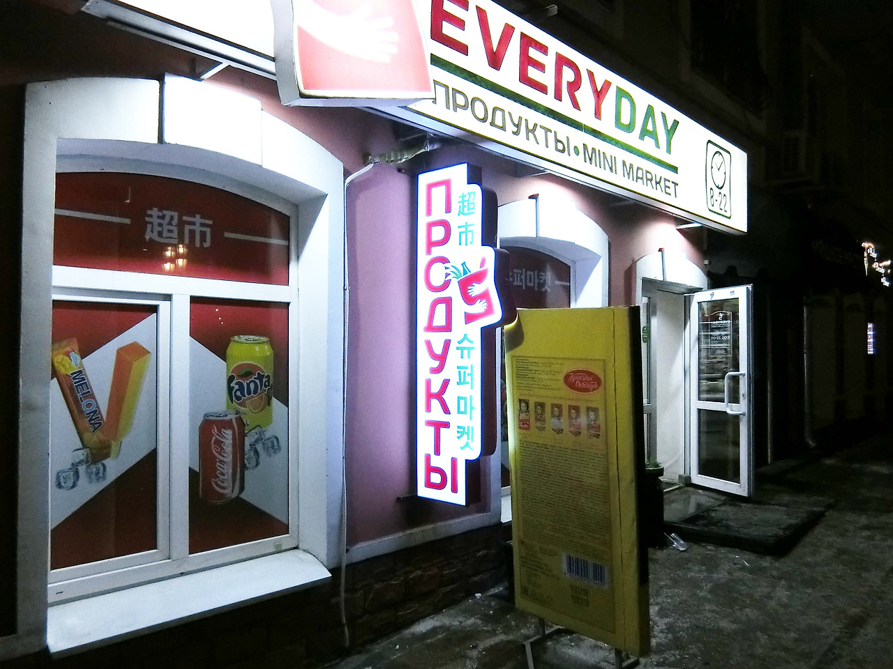 러시아어뿐 아니라 영어, 한국어, 중국어가 다 기재된 간판을 보는 건 흔치 않기에 매우 반가웠다.