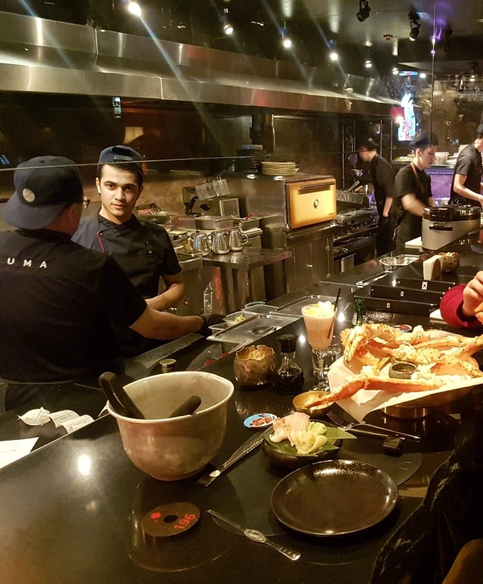 개방된 형태의 키친. 지근거리에 앉아 킹크랩을 기다렸다. 주마는 새벽 2시까지 영업을 한다.