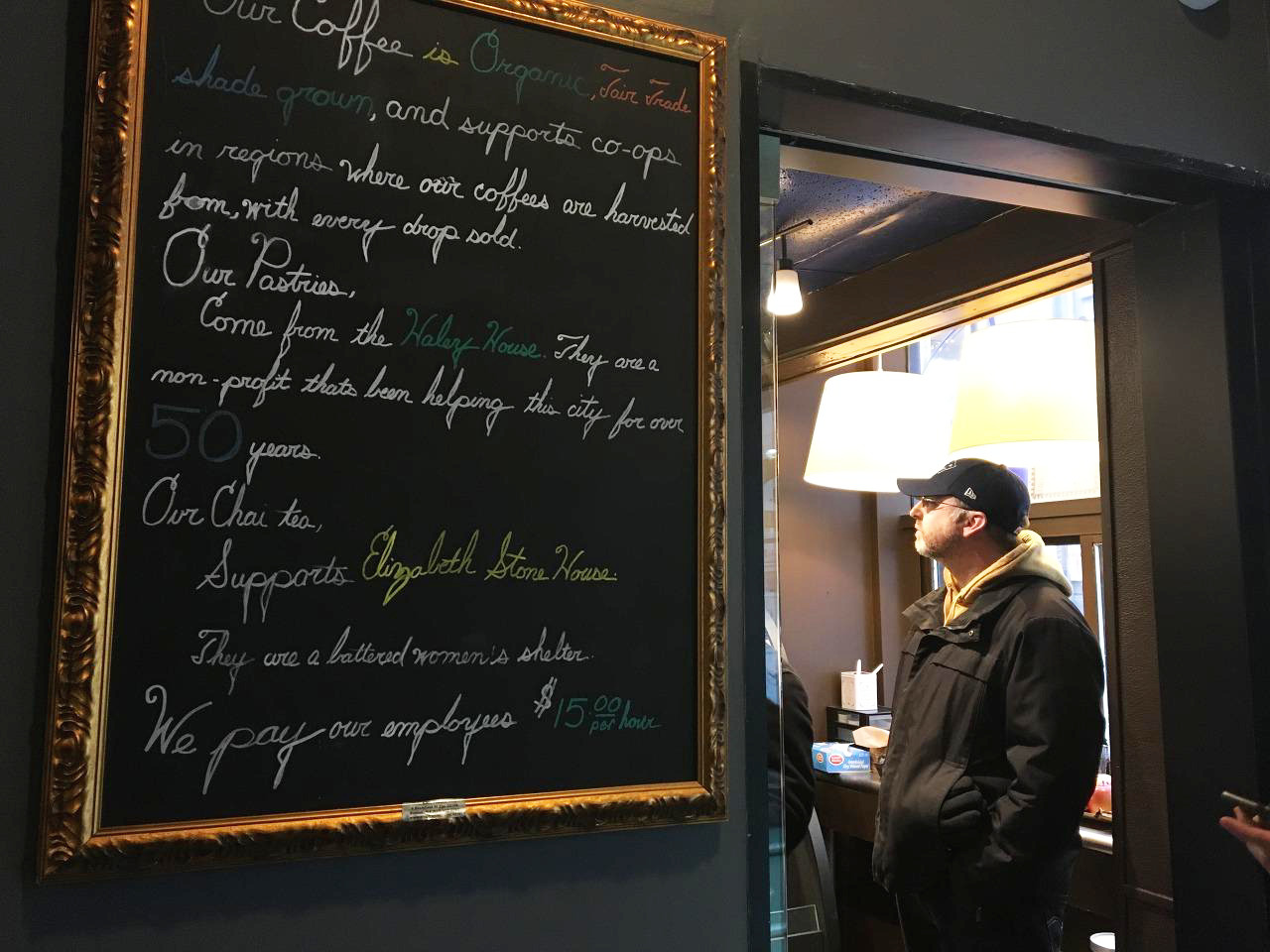 미국은 팁 문화가 있기 때문에 파트타이머들이 주로 팁으로 시급을 번다 해도 과언이 아니다. 그래서 많은 가게에서 파트타이머들에게 최저시급을 보장하지 않는다고 한다. 그런데 Boston Brewin은 좋은 커피맛 못지않게 좋은 마인드도 가지고 있는 카페였다. 모든 고용자들에게 시간당 15달러를 지불한다니. 멋진 가게이다.