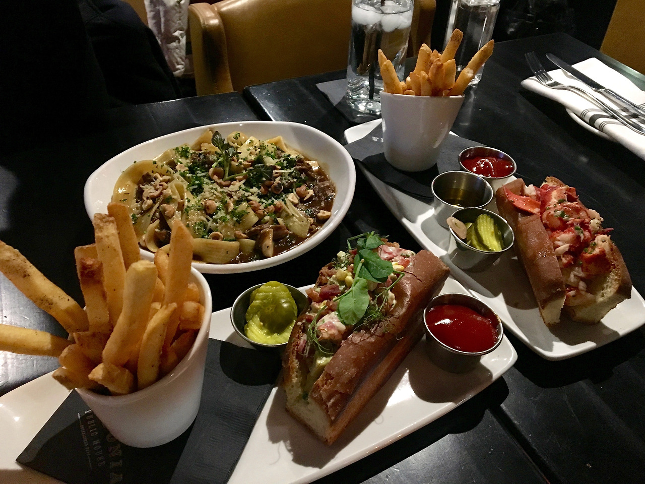 Chilled Lobster Roll, Hot Lobster Roll, Hand pulled lamb sugo 이렇게 세 개 시켰다. 파스타도 맛있었고, 랍스터롤은 두 가지 종류 전부 맛있었다. 감자튀김도 바로 튀긴 후에 나와서 뜨끈뜨끈하고 바삭한 것이 아주 일품이었다.