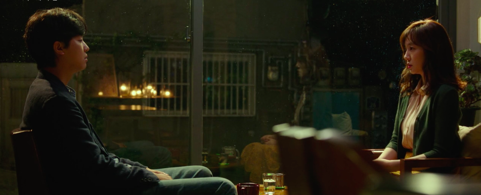 헤어진 커플이 다시 만난다는 것은, 역시 쿨할 수 없는 걸까. 마스크와 큰 선글라스로 얼굴을 꽁꽁 가리고 온 유진은 약간 상기되어 보인다. 저만큼 가린 걸 보니 연예인 인가 보네. 누굴 만나러 온 걸까. 어? 왔다. 유진의 눈이 살짝 흔들린다. 나누는 대화를 들으니 창석이 전 남자 친구였기 때문인 듯 하다. 오히려 창석이 더 덤덤해 보이네.