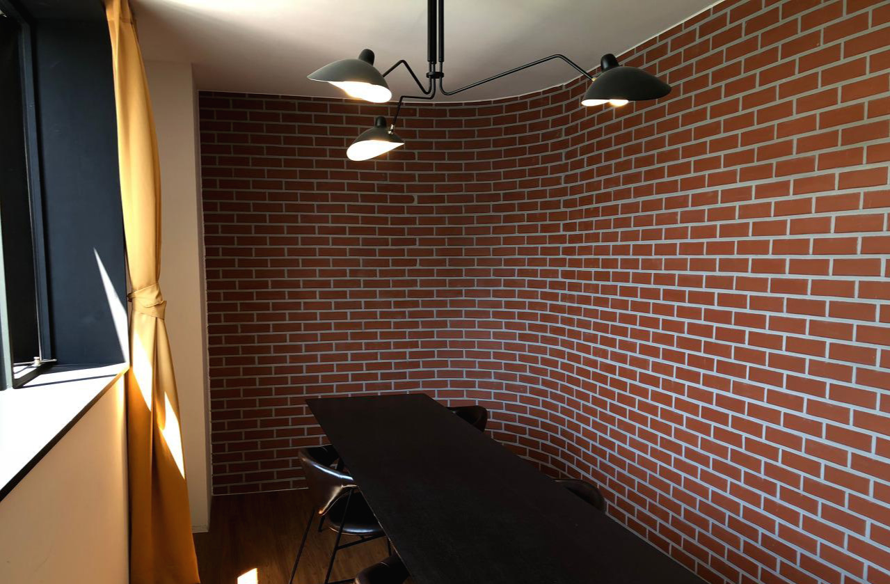 미팅룸의 매력은 빨간 벽돌로 꽉 찬 곡선형 벽. 나중에 집 인테리어 레퍼런스로 삼으려고 최대한 허리를 뒤로 숙여 최대한 벽이 다 담기도록 찍어보았다.