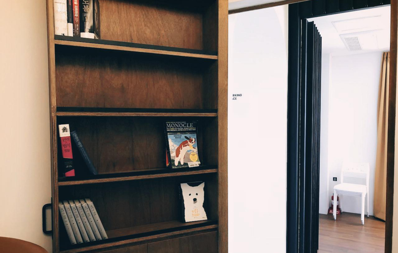 여긴 비밀의 공간인데 너무 숨겨놔서 잘 안 보여서 ㅋㅋ 요샌 열어놓고 있어요. 문이 책장처럼 생겨서 이용자 분들이 들어갈 수 있는 공간인지 잘 모르시더라고요.