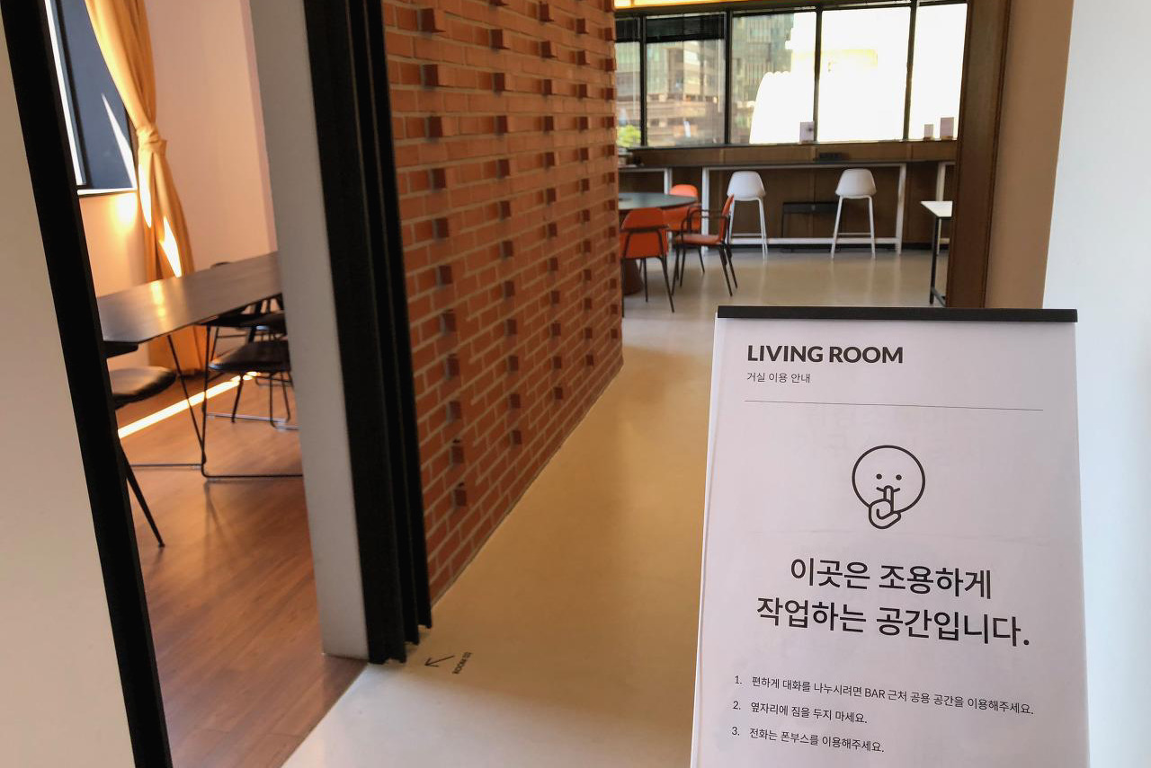 Working Space 중 Living Room은 멤버 분들이 집중해서 일할 수 있는 공간입니다. 여기서의 원칙은 말소리가 좀 작아야 한다는 거예요. 도서관처럼 아예 이야기를 안 하는건 아닌데, 작게 얘기하는 정도. 같이 이용하는 분들이 더 집중해서 이용할 수 있도록이요. 자리마다 사용할 수 있는 콘센트도 있어서 노트북을 활용하시는 분들이 주로 이 공간을 사용하세요.