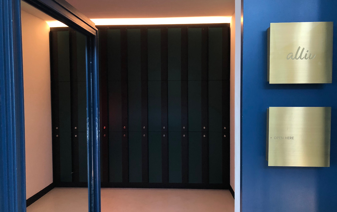 들어가는 입구부터 푸른 계열의 벽, 어두운 톤의 붉은 복도 벽, 녹색 계열의 락커가 잘 어울려서 신기했다. 어울리는 색의 조합이 아닐 수도 있는데 톤을 잘 맞춰서 그런지 조명까지 함께 잘 어우러졌다.