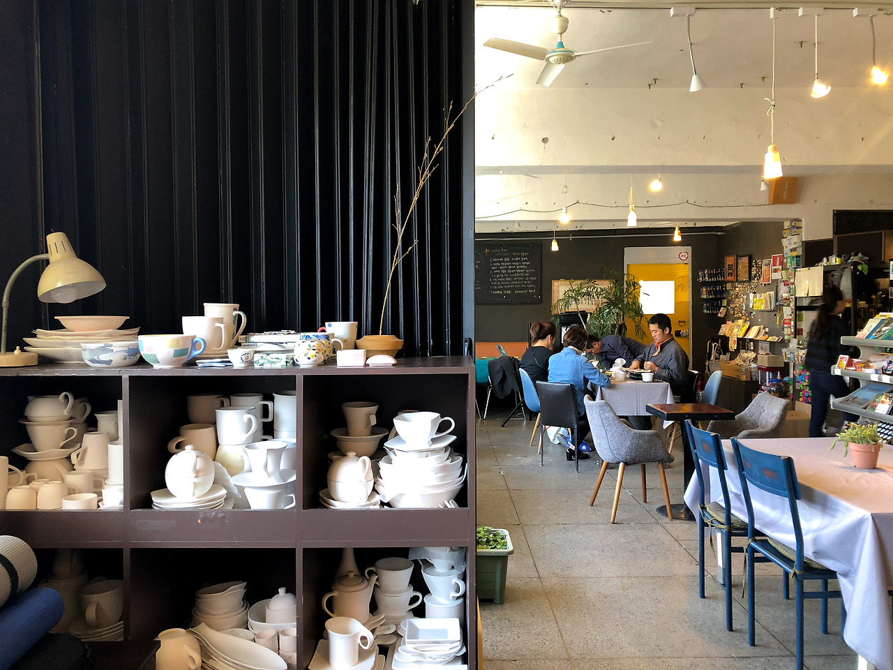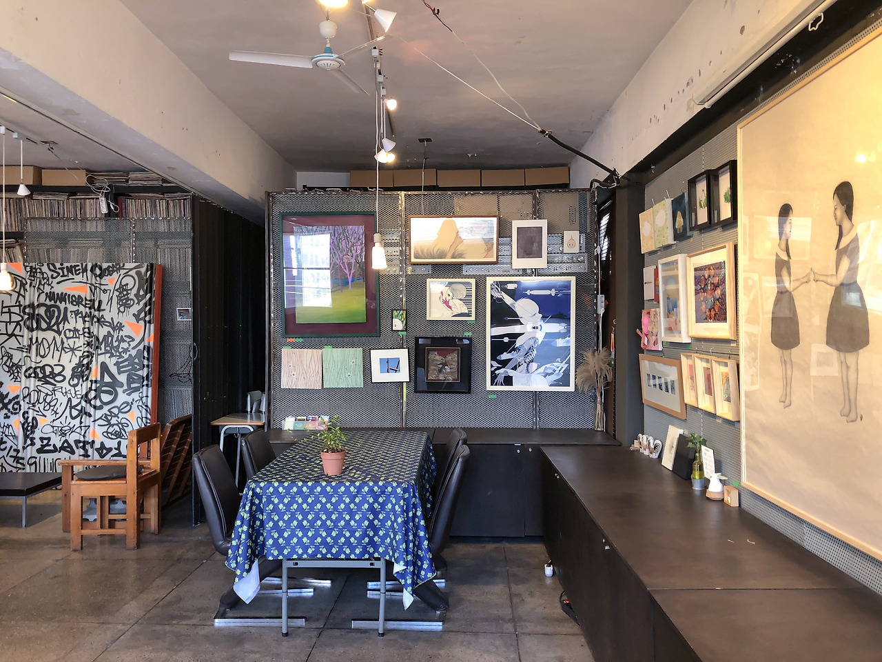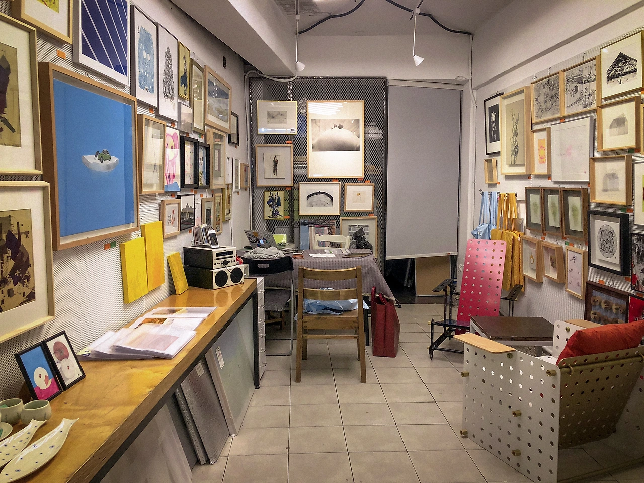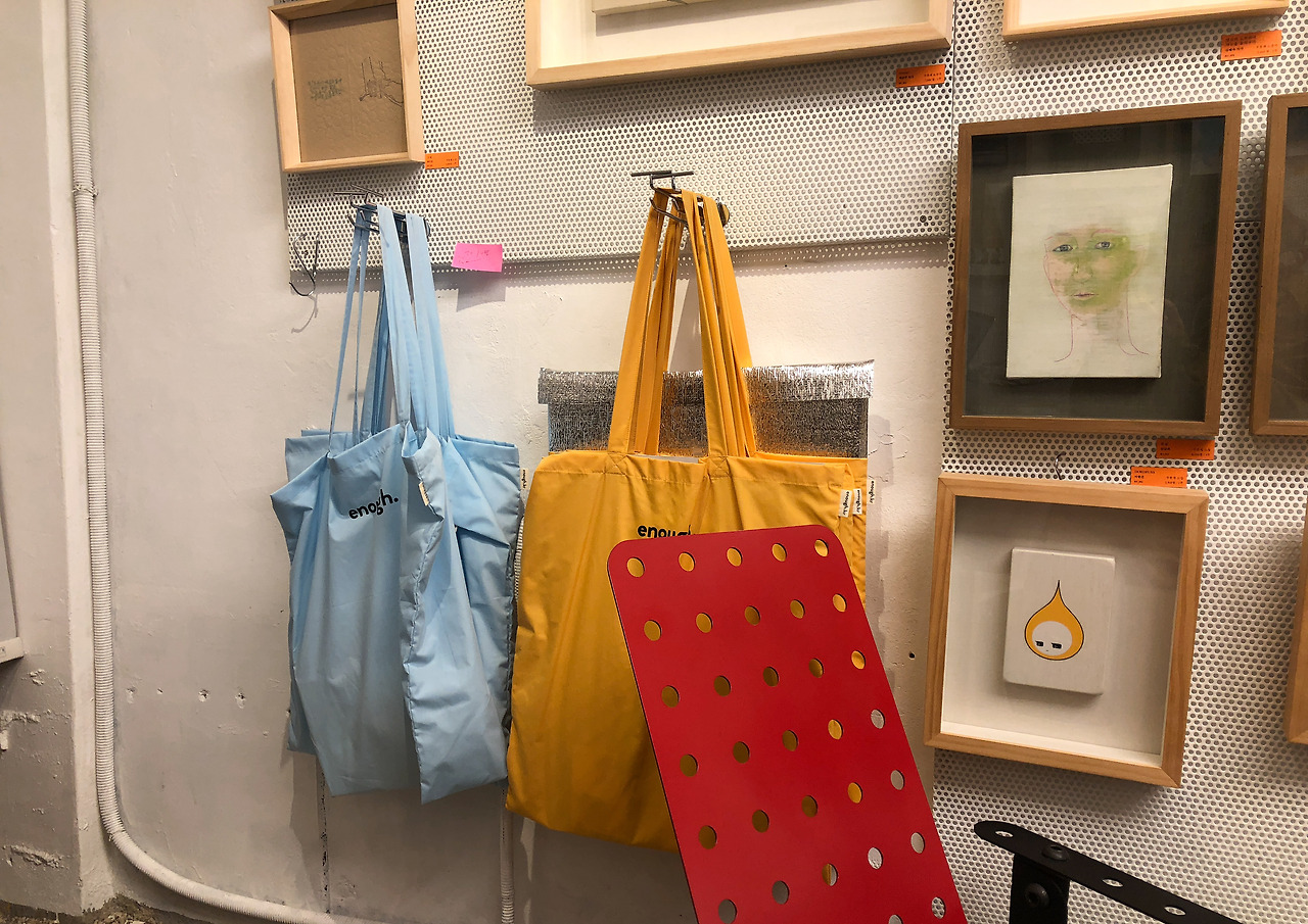 일단 처음 들어가서 든 생각은 '이렇게 큼직하고 아기자기한 것들이 모두 같이 모여 있네' 라는 것이었다. 짐을 놓고 숨을 조금 돌린 후 둘러보니 다양한 그림들이 벽 빼곡히 걸려있었다. 한 켠엔 그래피티가 잔뜩 그려진 꽤 벽이 두 짝 있었다. 액자 뿐 아니라 엽서, 판화 등 작은 그림들도 있다. 한 켠에는 그릇, 접시 등 도기들이 가득했다. '오 - 이 공간 makers를 위한 곳이구나?'
