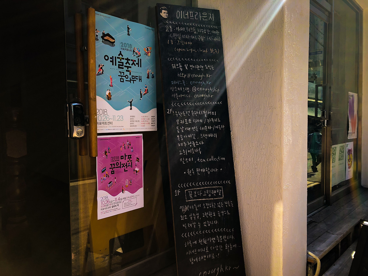 이너프라운지는 스페이스클라우드에서 진행중인 도시작가 프로젝트 덕분에 방문한 두번째 공간이다. 처음 도시작가 신청 페이지에서 만난 이름은 '카페 윌리'였다. 그래서 단순히 카페인줄 알았다.