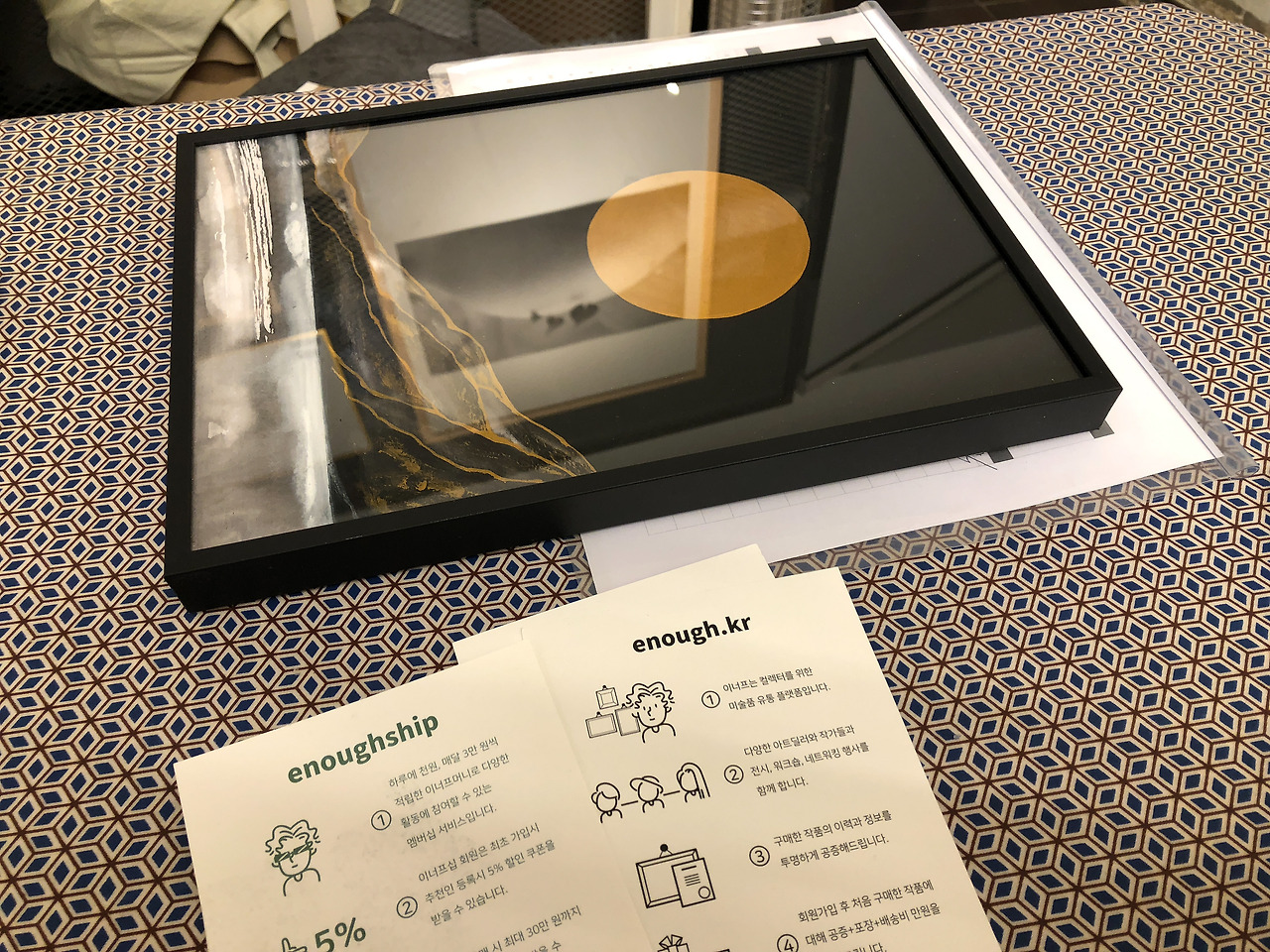 멋진 그림을 대여하고 싶으신 분들이라면! 꼭 이너프라운지에 방문해 공간도 즐기고 친절한 매니저님의 그림 설명도 들으며 문화 생활을 만끽하시길 바란다 :)