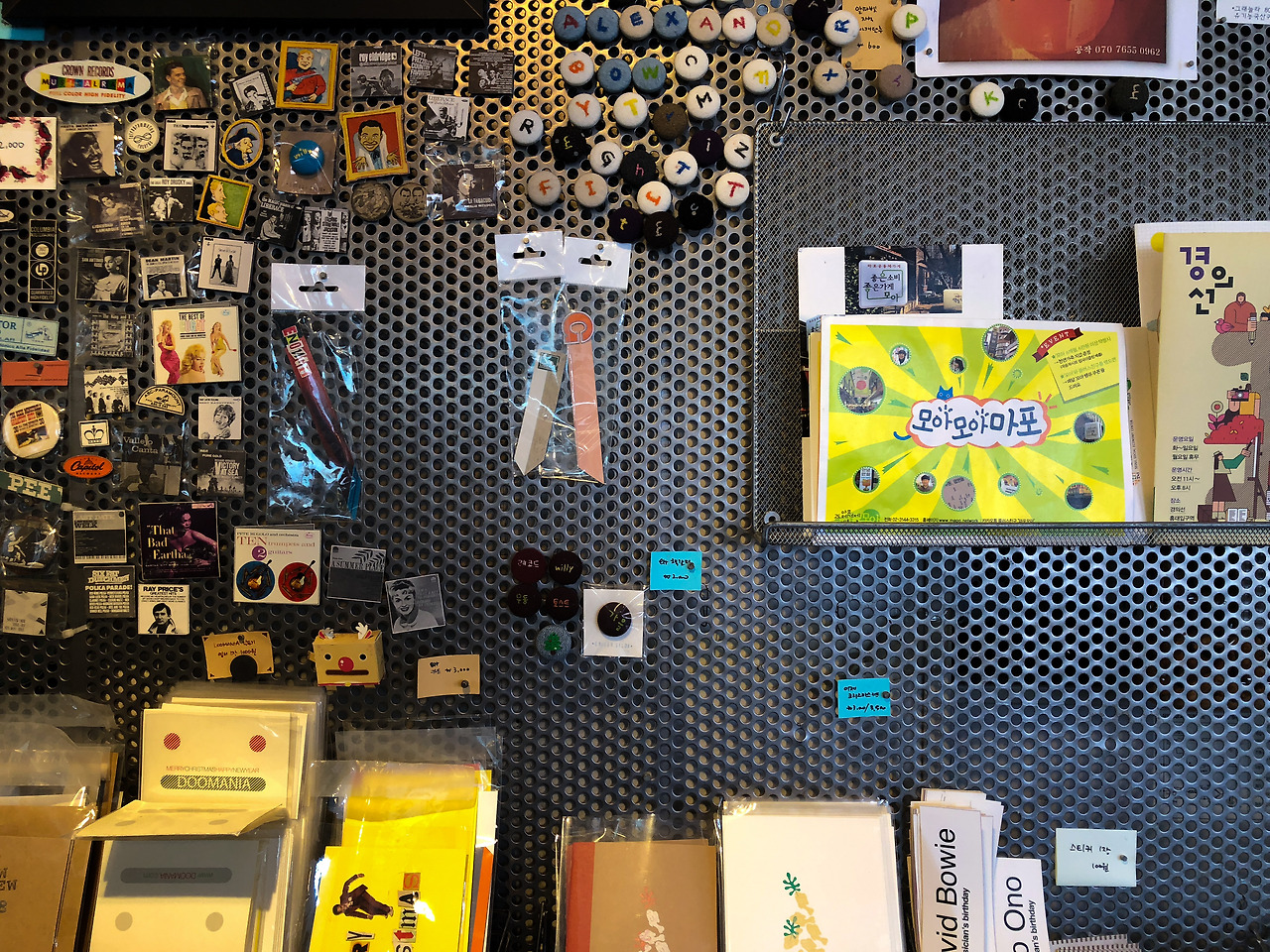 공간에 들어서자마자 왼쪽에는 이렇게 다양한 잡동사니들을 판매한다. 엽서, 마그넷 등등. 원래 이런 작은 것에 물욕을 심하게 느끼는 나지만 이 날은 잘 참았다 :)