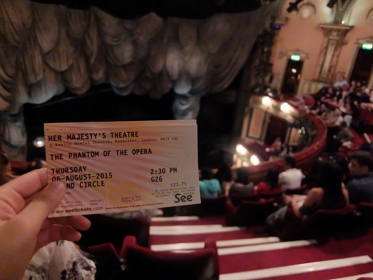 식사를 다 마치고, 오전에 일찍 가 day seat으로 겟한 오페라의 유령을 보러 Her Majesty's Theatre에 갔다. 이름부터 너-무 좋다. 여왕폐하의 극장이라니, 그 곳에서의 오페라의 유령이라니! 감히 인생 뮤지컬이라 칭하겠다. 초반 크리스틴의 Think of me에서 돋은 소름과 울컥함을 시작으로, 모든 장면 하나하나가 정말 아름다웠다. 영화에서 보았던 그 노래들이 현악기 라이브 연주와 함께 바로 내 눈 앞에서 펼쳐지고 있다는 것을 느끼자 눈물이 맺혔다. 그렇게 슬픈 내용도 아닌데, 다 아는 이야기인데 노래와 아름다운 무대장치가 자꾸 눈물샘을 자극하더라고. 꿈인지 생시인지 싶을 정도로 정말 최고의 뮤지컬이었다. 아주 긴 시간 동안 한 곳에서 자리를 지켜온 위엄이랄까.