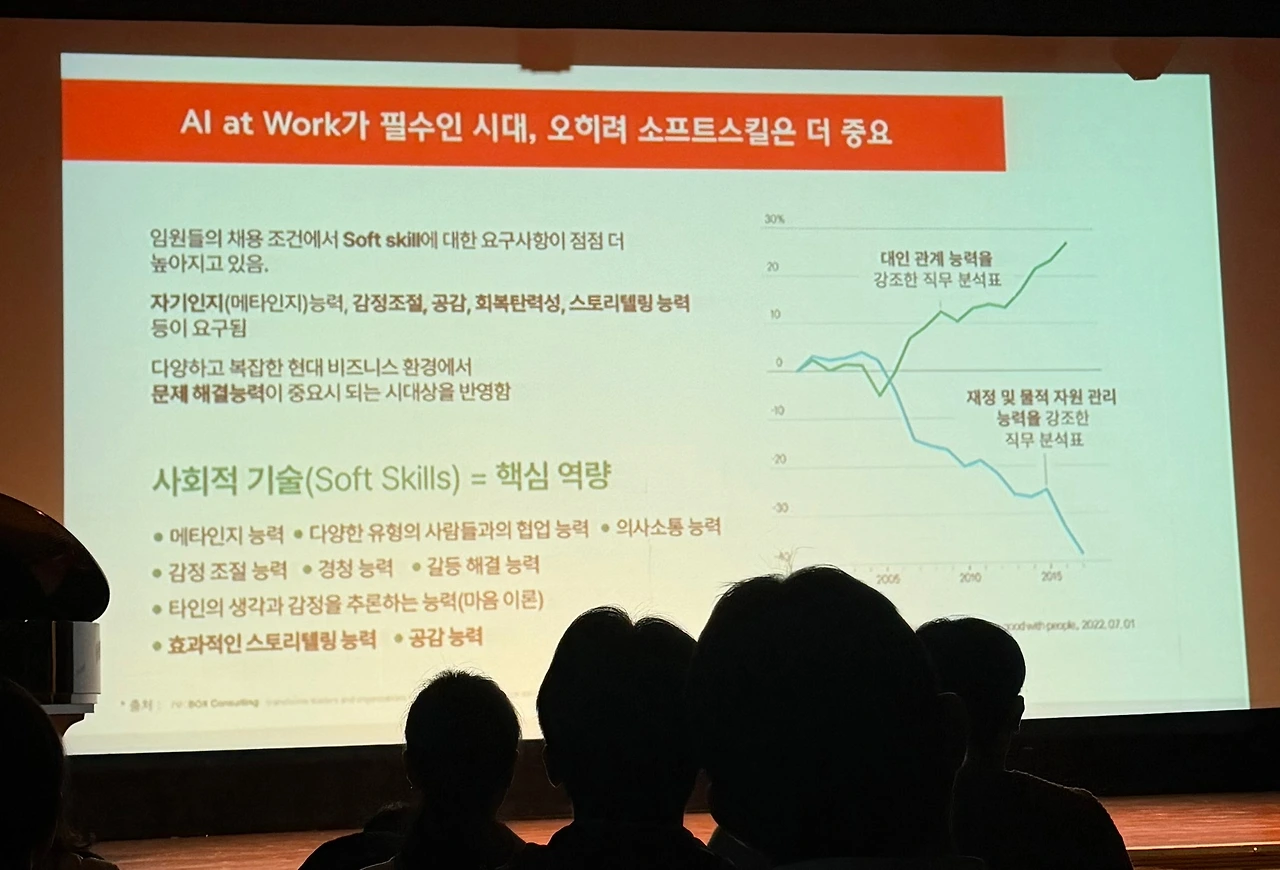 특히 리더에게는 Hard Skill(기술능력) 보다는 대인관계, 소통이 강조되는 Soft Skill이 더 중요해지는 시대인 것이다. (AI가 보편화되는 시대에 맞는 인재상에 대한 고민이 매우 필요해짐)