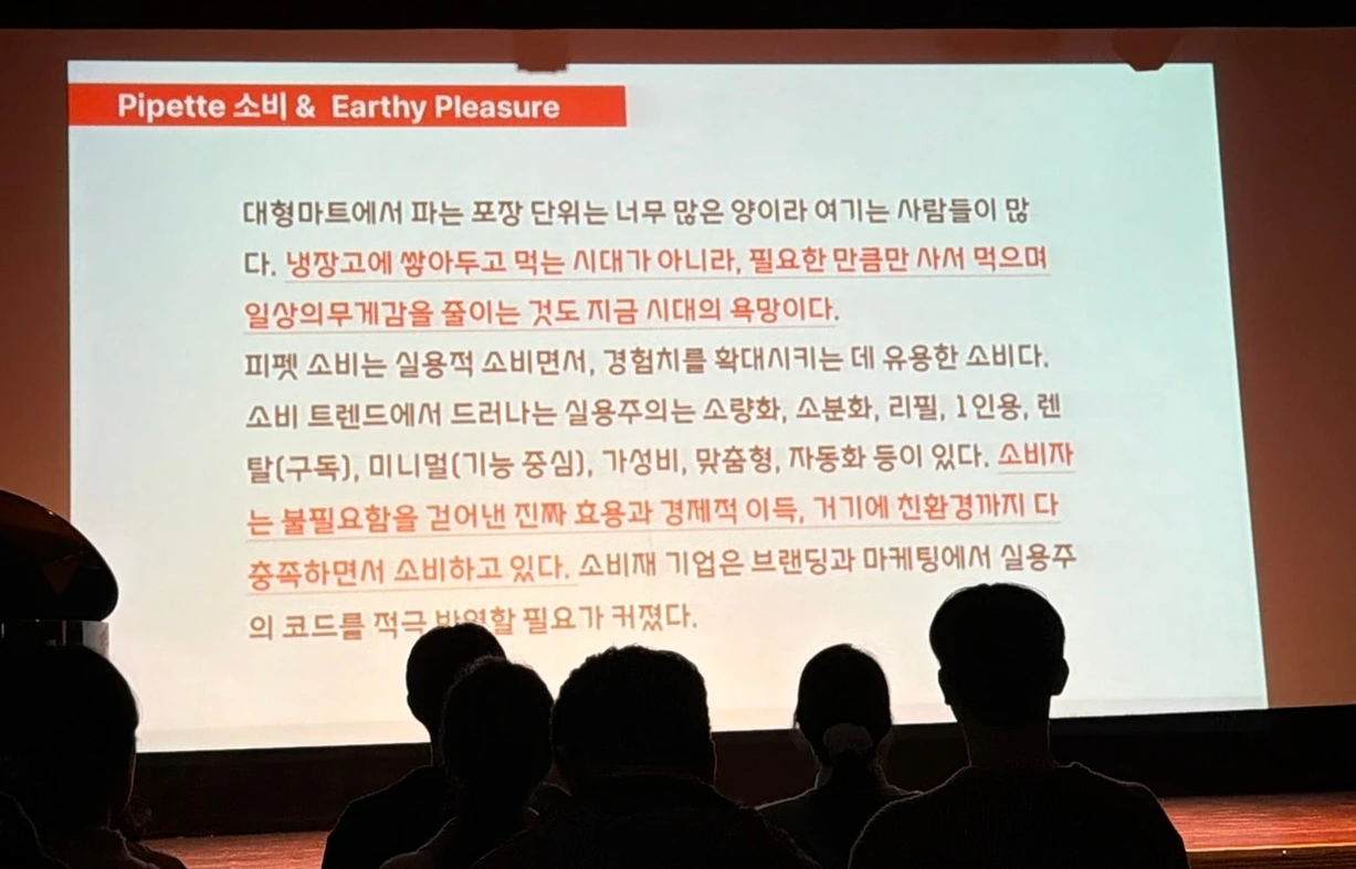 예전처럼 대용량을 한 번에 사서 쓰는 방식이 아니라, 작게, 조금씩, 그때그때 필요한 만큼 사용하는 실용적 소비 트렌드이다. 유통업은 이 흐름을 적극적으로 해석해야 한다는 메시지가 담겨 있다.