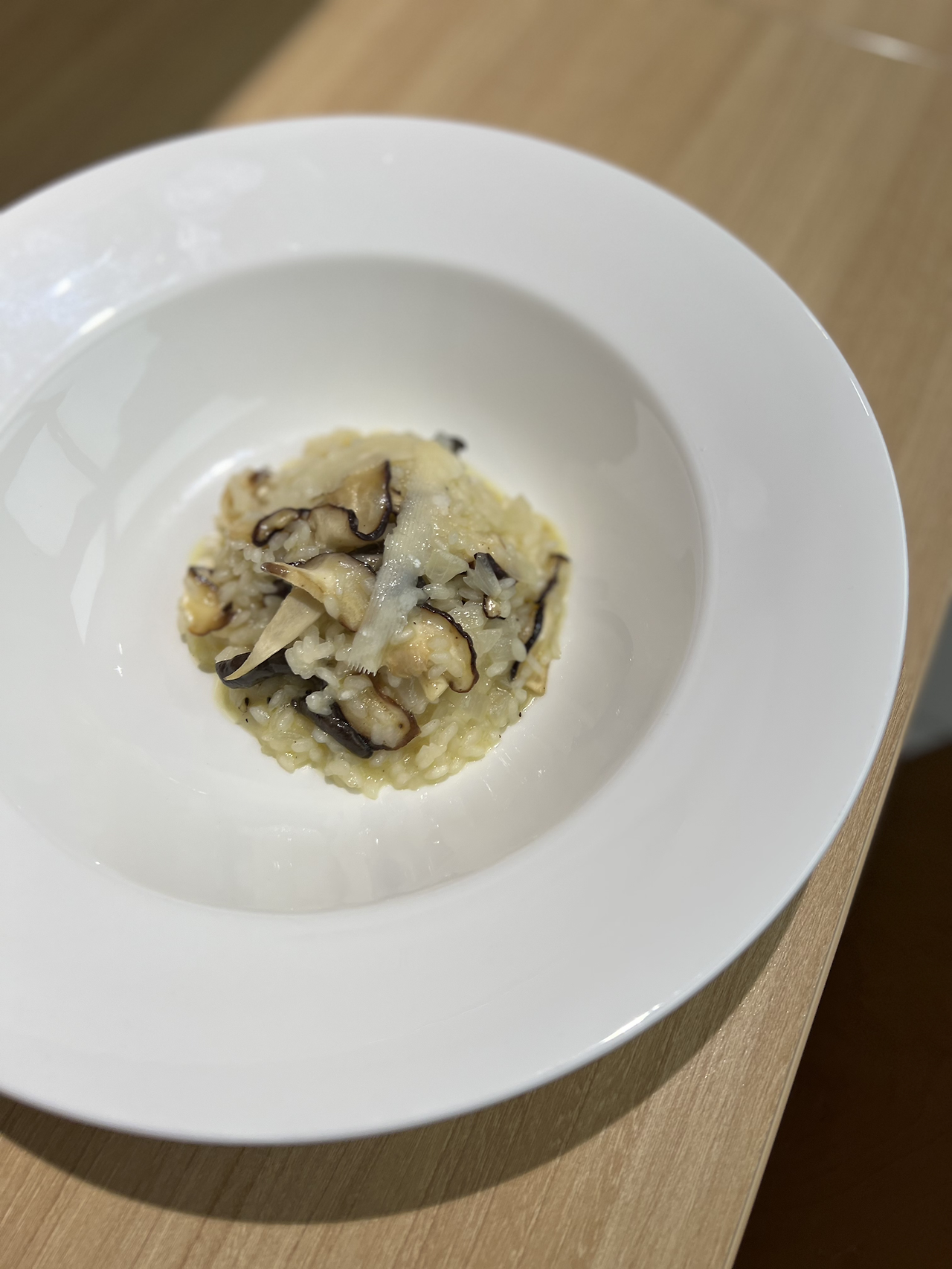 올리브 오일, 소금, 후추, 리조또 쌀(아르보리오, 까르나롤리 또는 비알로네 나노) 200g, 화이트 와인 100g, 닭고기 육수 750g, 버섯(취향에 맞게 여러가지) 300g, 버터 20g, 파르마산 치즈 40g