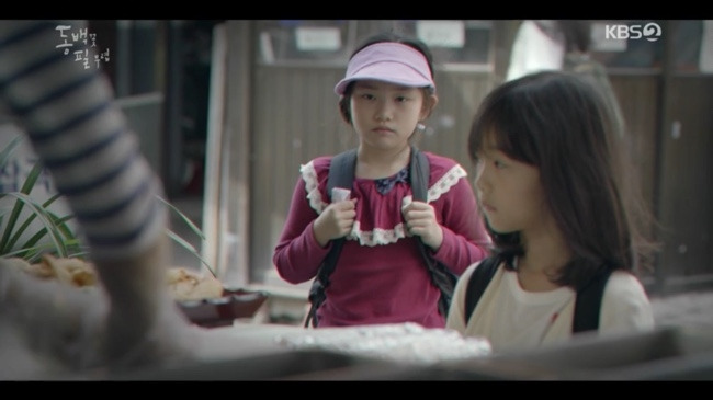 어린 향미와 어린 동백이. 향미는 자존심을 지키느라 허언을 일삼는다.
