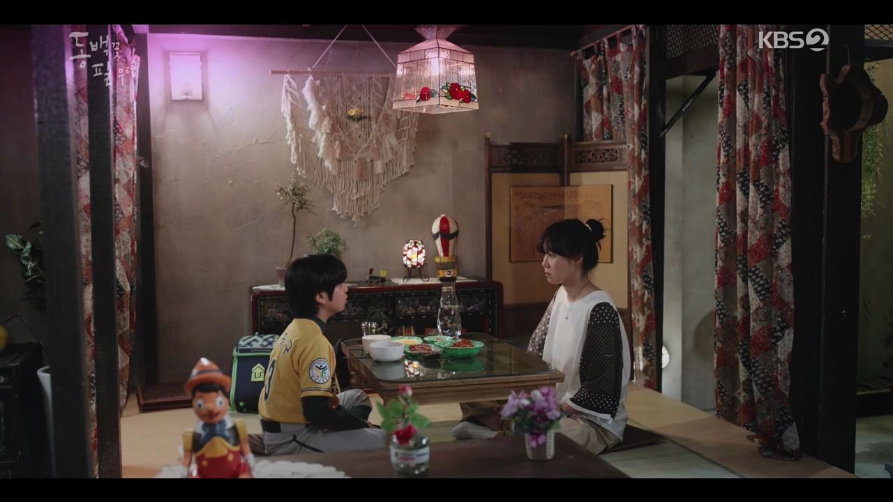시장 언니들에게 된통 데이고 고달픈 동백에게 필구는 "어린이인 내가 엄마를 왜 지켜야 해! 엄마가 나를 지켜줘야지."라고 소리친다.