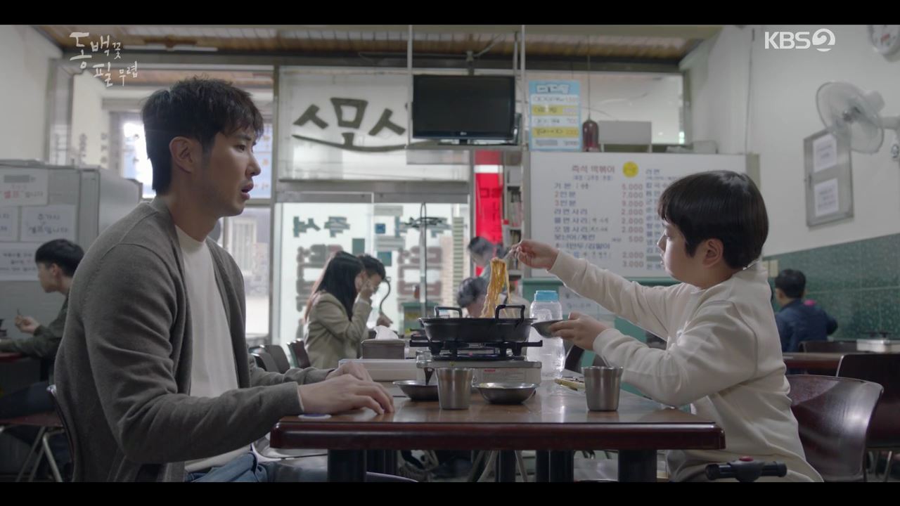 이 장면이 정말 별로였다. 동백이 해결할 수 있는 상황임에도 굳이 용식이 등장해서 필구의 편에 섰다. '남자는 남자가 상대해야 한다'라는 은근한 플롯이었다. 동백의 무력한 모습을 보는 게 아쉬웠던 것도 잠시, 이 장면 뒤에 동백은 "이래서 아들에게는 아빠가 필요한가 봐요. 우리는 투닥거리면서 싸울 줄만 알았지."라는 식의 대사를 뱉는다. 그것은 곧 '규범적 남성성'이 필요성을 함의한다. 아들에게 아빠가 필요하다고 전제하는 순간, 드라마 안에서 엄마에게 길러진 유복자 용식은 '규범적 남성성'이 결여된 인물이 된다. 그러나 이 드라마를 시청한 시청자들은 분명히 알 것이다. 이 드라마에서 필구를 제외한 성인 남성 캐릭터 중에 용식이가 가장 흠이 없다는 사실을. 서사의 패러독스다. 이런 서사는 한 부모 가정의 아이들을 귀납하게 한다. 과거를 반추하고 트라우마 뒤에 숨게 한다. 무기력과 상처를 견인한다.