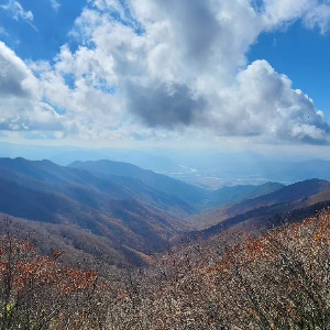 편한 차림에 운동화 신고 내려오는 젊은이들을 보고 얕잡아 봤다가 큰 코 다칠 뻔했다. 쉬지 않고 이어지는 오르막길과 돌계단길에 심장은 분주하다. 중간중간 시선을 사로잡는 구름과 햇빛에 얼룩진 산들의 장관에 마음이 나댄다. 드디어 오른 정상. 이리 봐도 저리 봐도 수려한 산세와 절경. 카메라에 담아내느라 눈과 손이 허둥지둥한다.