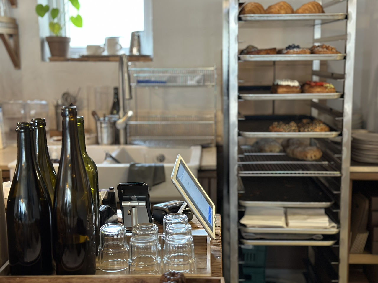 매장에는 거친 나뭇결의(그래서 더 호주 자연주의가 떠오르는) 테이블과 의자가 곳곳에 놓여 있고, 정중앙의 커다란 조명 아래는 공용 테이블이 있어 여러 사람이 함께 앉을 수 있게 되어있다. 그리고 원두를 갈아내고 에스프레소를 뽑아내는 소리와 매장 한편에서 빵이 구워져 나오는 소리 그리고 친절한 사장님이 손님들에게 말을 거는 소리 등으로 늘 복작거린다.