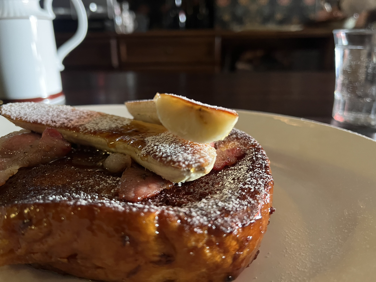메인 메뉴는 ‘프렌치토스트’. 나오기까지 시간이 꽤 걸리는 메뉴다. 그도 그럴 것이 완성된 토스트 위에 시럽이 뿌려져 나오는 일반적인 식당과는 달리, 오파토의 프렌치토스트는 조리과정에서부터 식빵에 시럽을 발라 낮은 온도에서 진득하게 구워내기 때문이다. 그 결과 겉은 바삭하면서 토스트 시트 내부까지 풍부한 단맛을 갖고 있다. 거기에 곁들여 베이컨과 표면이 설탕으로 얇게 코팅된 바나나를 함께 먹으면 미미(美味)를 외치게 된다.