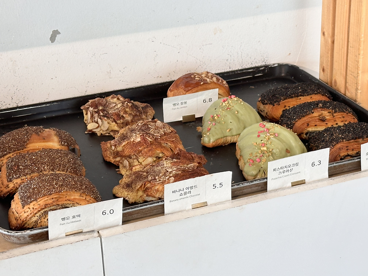거기다 속은 단짠의 버터 풍미가 좋았고, 촉촉하게 버터를 머금어 살짝 덜 익힌 보드라운 파이 속을 먹는 느낌이었다. 이제까지 크루아상은 속이 중요하다고 생각했는데 (그래서 베이커리들에서는 단면을 보여주기도 한다), 그 편견 또한 깨 주는 부분이었다. 겉도 속만큼 매력 포인트가 될 수 있다니!