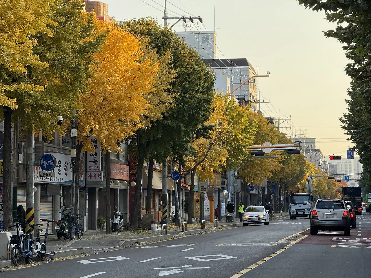 좌측은 은행나무 우측은 플라타너스 반반 치킨처럼.