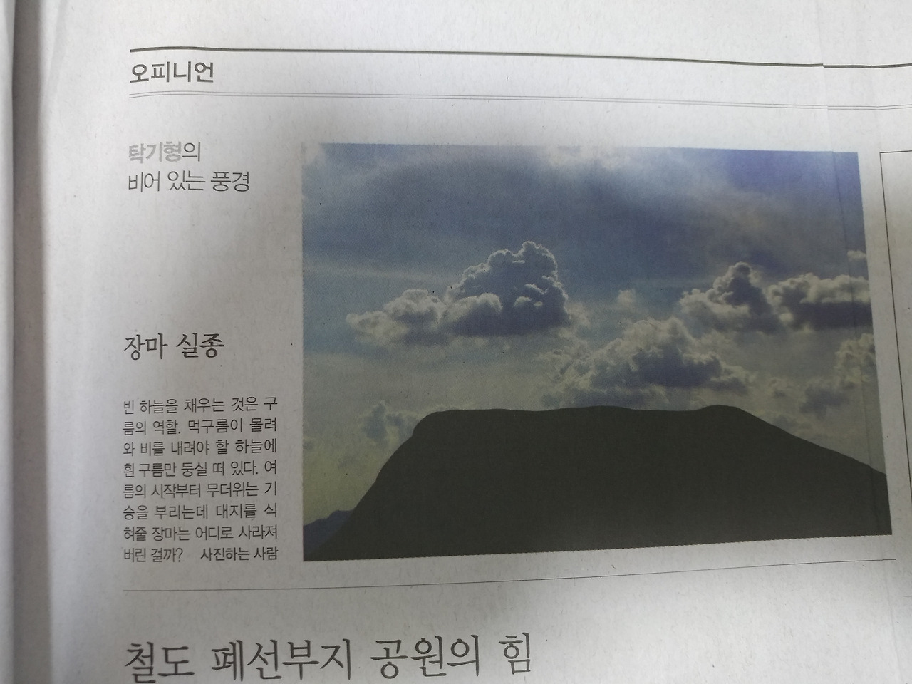 그리고 이건 사진 한장으로 '울림'을 주는 목적을 가진, 신문의 전통적인 코너인데요. 임팩트도 없고 눈길이 가지도 않고 당연히 울림도 없습니다. 오히려 약간 오글거릴 때가 더 많습니다. 정말 좋은 사진을 시원시원하게 쓰던지 아예 안쓰는 게 낫겠습니다.