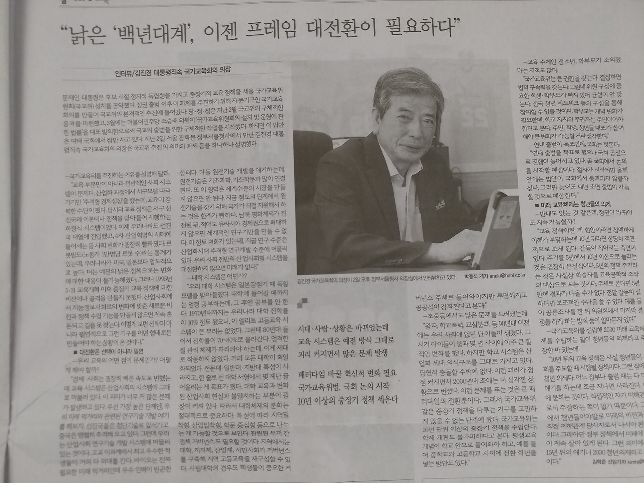반면 중앙일보는 자칫 딱딱할 수 있는 과학자를 인터뷰하면서 사진에 대한 고민을 많이 한 흔적이 보이죠? 다리를 벌리고 스툴 위에 책을 쌓은 후 안경을 만지작 거리는 모습이 친근감과 호기심을 줄 수 있습니다. 사진도 명암을 강하게 줘서 극적인 효과를 주고요. 사실 아저씨들한테 저런 자세 시키면 안한다고 난리입니다. 얼마나 잘 설득하는지가 관건이죠. 다른 신문 같았으면 또 팔짱끼라고 했을 겁니다.