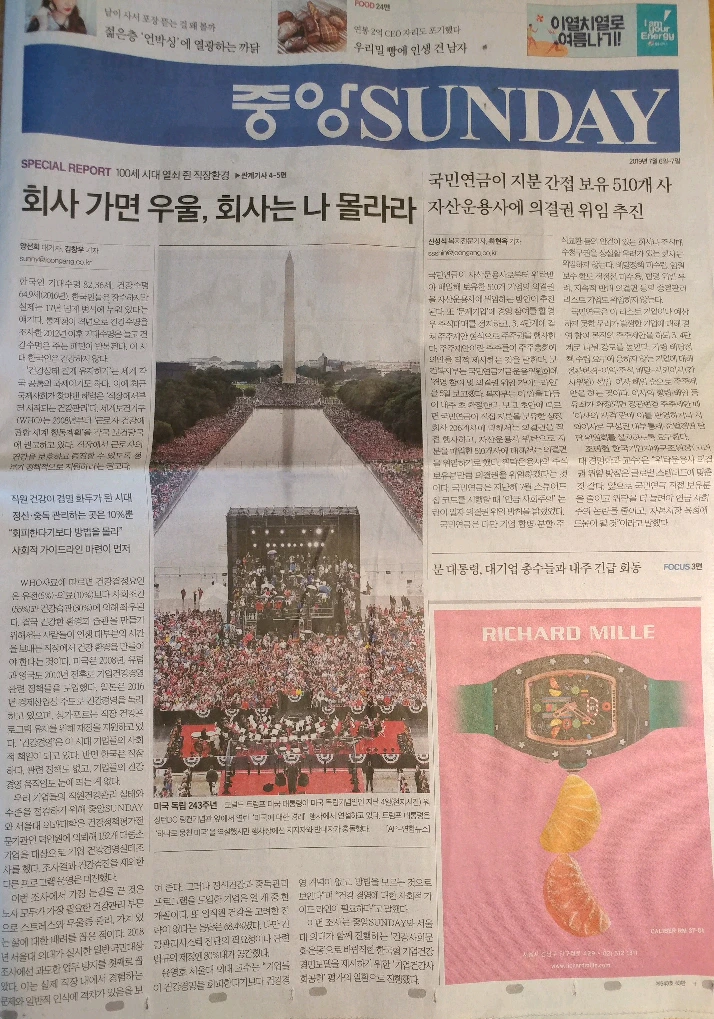 그나마 잘하고 있는 곳은 중앙일보라고 봅니다. 개별적인 기사의 완성도는 차치하고, 기획이나 지면 구성 등을 비교했을 때 주말판으로 나오는 중앙선데이를 참고할 수 있을 거 같습니다. 물론 주말판이라서 주중판보다 훨씬 가벼운 기사들로 구성돼 있습니다. 저처럼 전문적인 지식이 없는 사람도 관심을 갖고 읽을 수 있는 기사들이 대부분지만, 가십은 아니고 재미있는 잡지를 보는 느낌입니다.