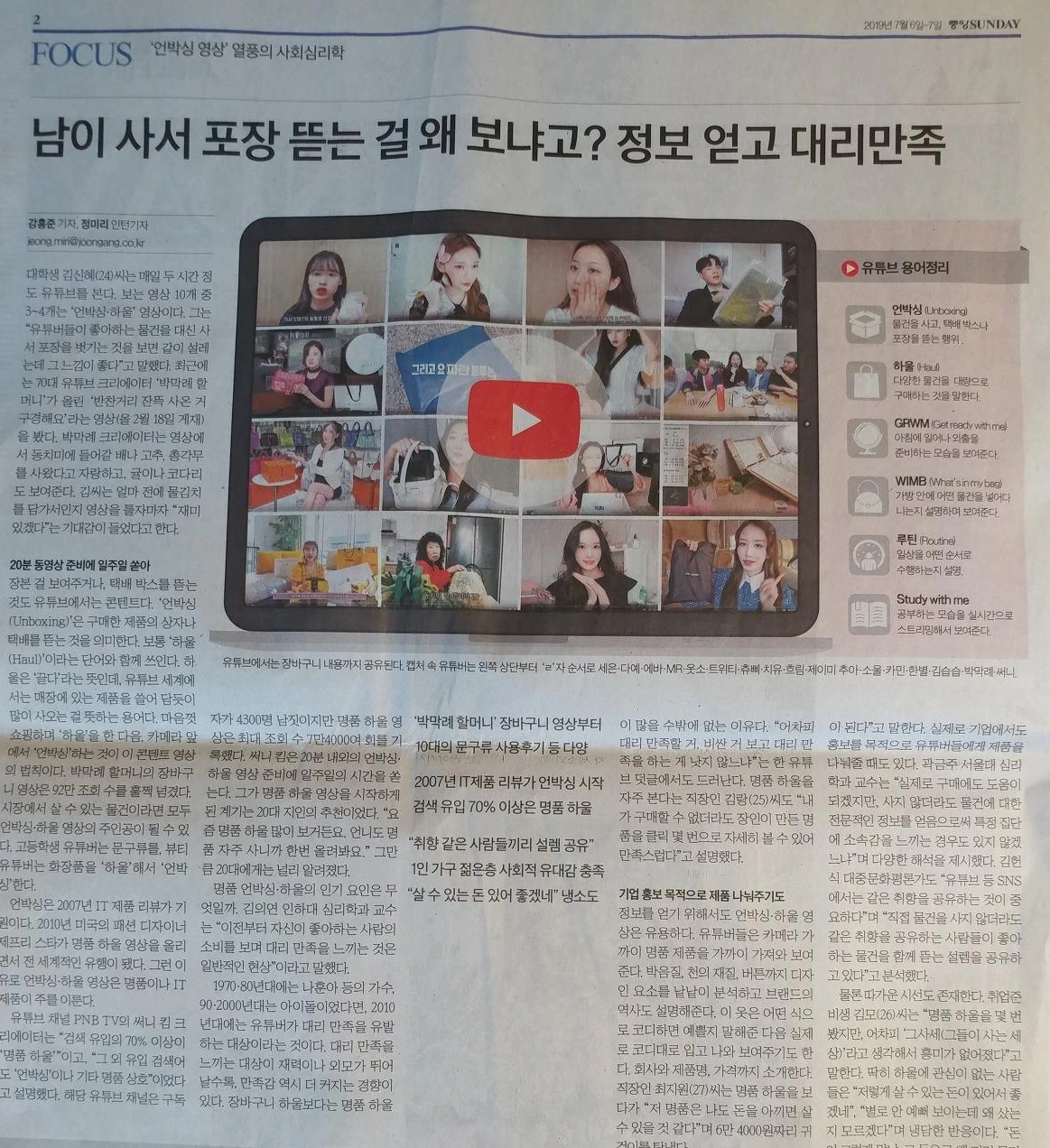 2페이지에는 요즘 유튜브에서 유행하는 언박싱에 대한 기사를 다룹니다.