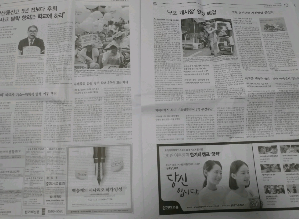 요즘 종이 신문을 읽는 사람이 얼마나 될지 모르겠습니다. 저도 종이 신문을 즐겨 읽었는데 안 본지 몇년이 지난 것 같습니다. 그러다 우연히 친구가 갖다준 종이 신문을 읽다가 "종이 신문은 재미없는데, 재미있다" 라는 말도 안되는 말을 내뱉고, 어쩌다보니 한겨레 신문을 구독까지 하게 됐습니다. (지면 구성이 여전히 고루하고 따분하지만 포털로만 보다가 종이로 기사를 읽으니 재미가 색다르다는 뜻입니다 ㅋ)