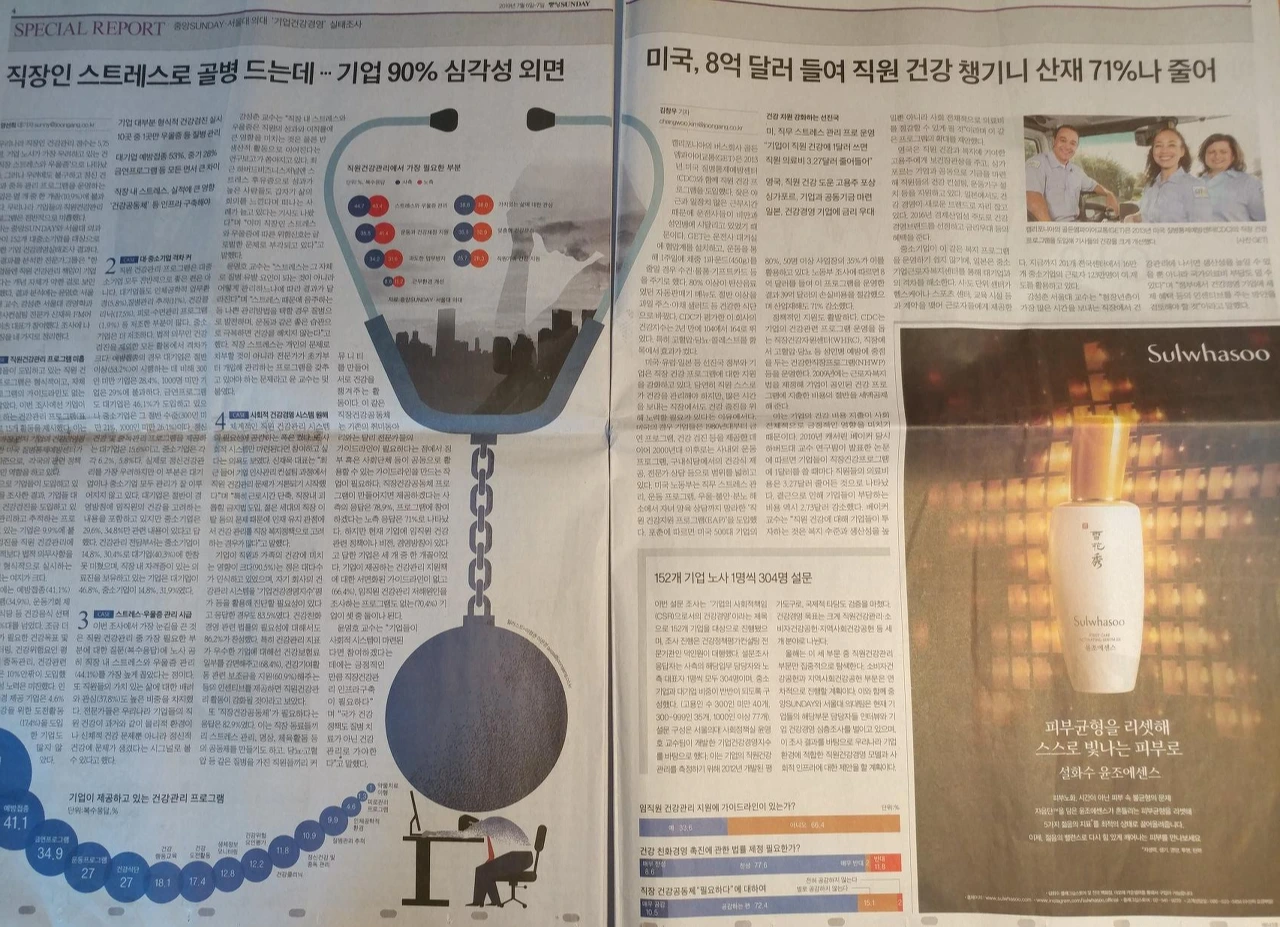 7월 6일자 1면 톱기사로는 직장환경에 대한 기사를 다루었습니다. 사주나 노동자나 모두 관심을 가질만한 주제이죠. 3면이 이어지는데, 결론도 아주 바람직합니다. 회사가 이제는 회사의 이익을 위해서 노동자들의 정신건강도 살피는 게 더 이득이라는 취지의 결론이 이어지죠. 무엇보다 제목이 정말 한 눈에 쏙 들어옵니다. 직관적으로 이해가 되고, 눈길을 가게 만드는 제목입니다.