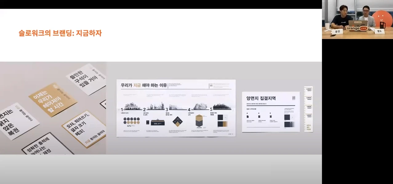 *오렌지라이브(오라이): 슬로워크는 조직과 사회의 변화에 기여하는 크리에이티브 솔루션을 제공하는 회사입니다. 콘텐츠, 브랜드, 디지털, 디자인 전문가들이 모여있는 곳이기도 해요. 지금까지는 슬로워크의 전문가들이 블로그 글로 노하우를 공유해서 큰 인기를 끌고 있는데요.