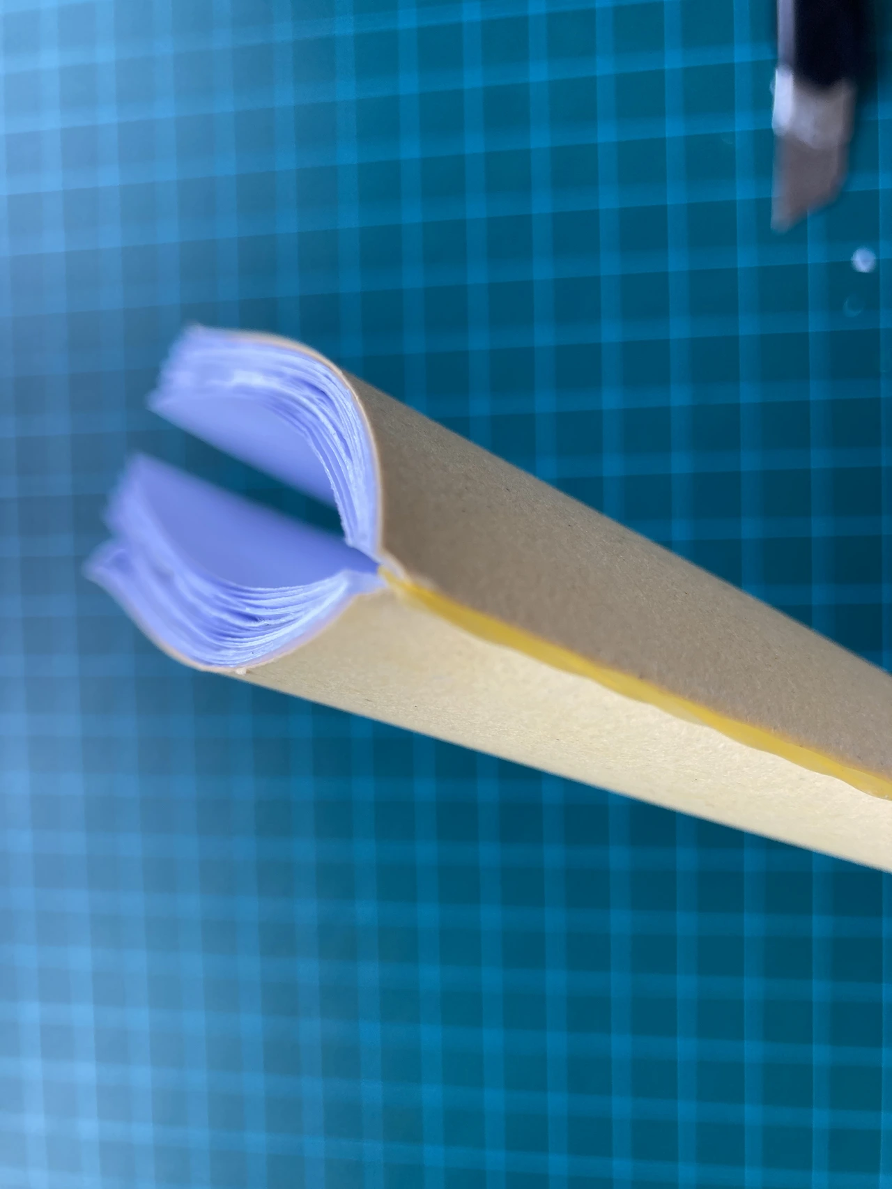 A4 사이즈의 이면지를 반으로 접어서 차곡차곡 포갠 뒤, 조금 두꺼운 종이를 맨 아래에 두고 표지로 사용!