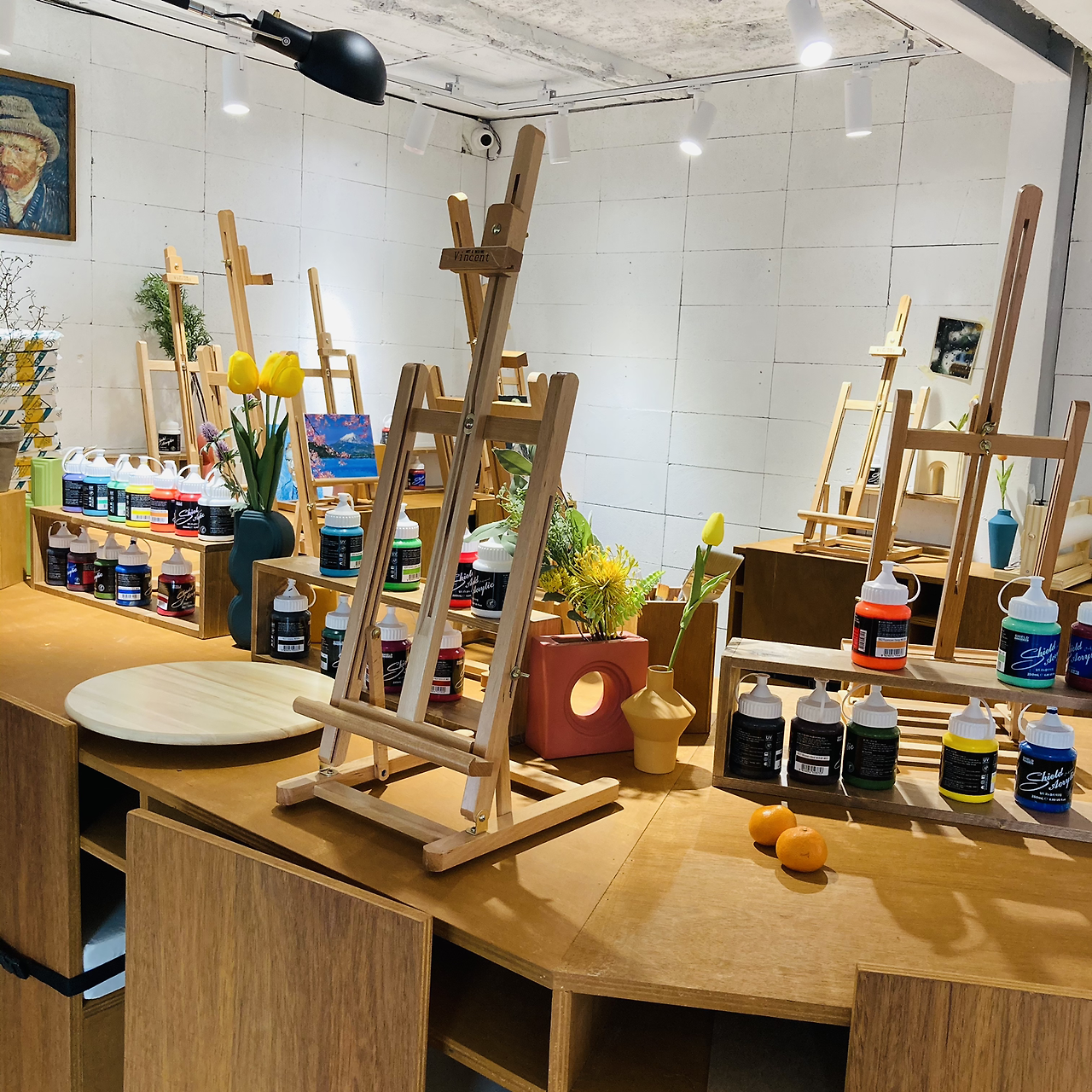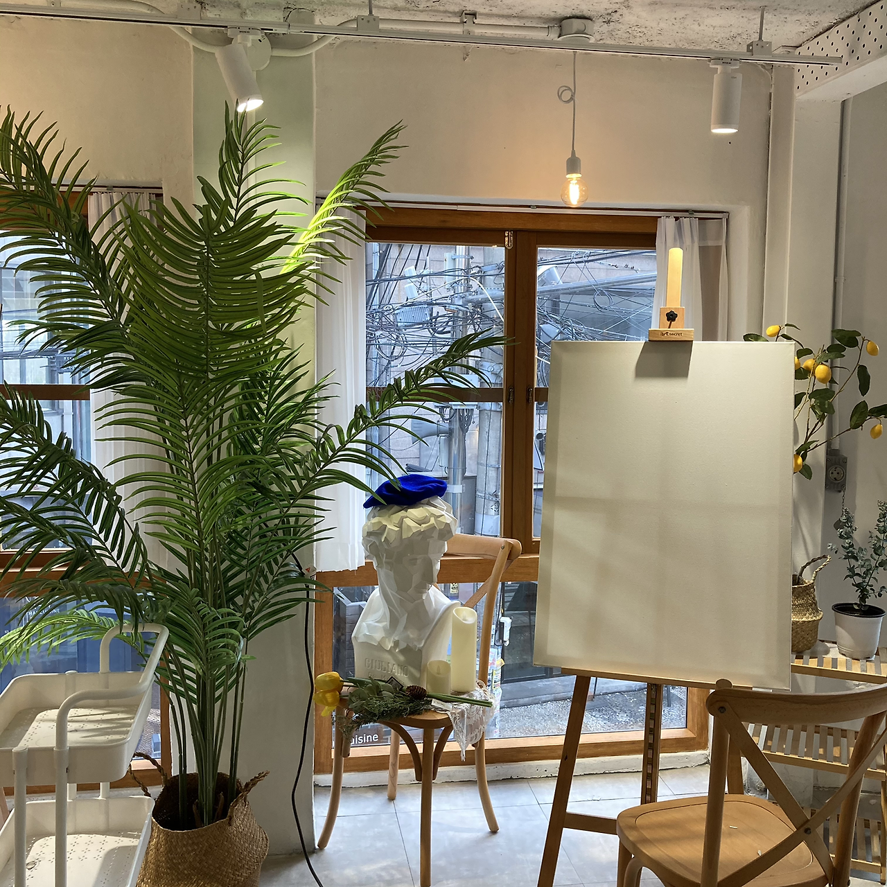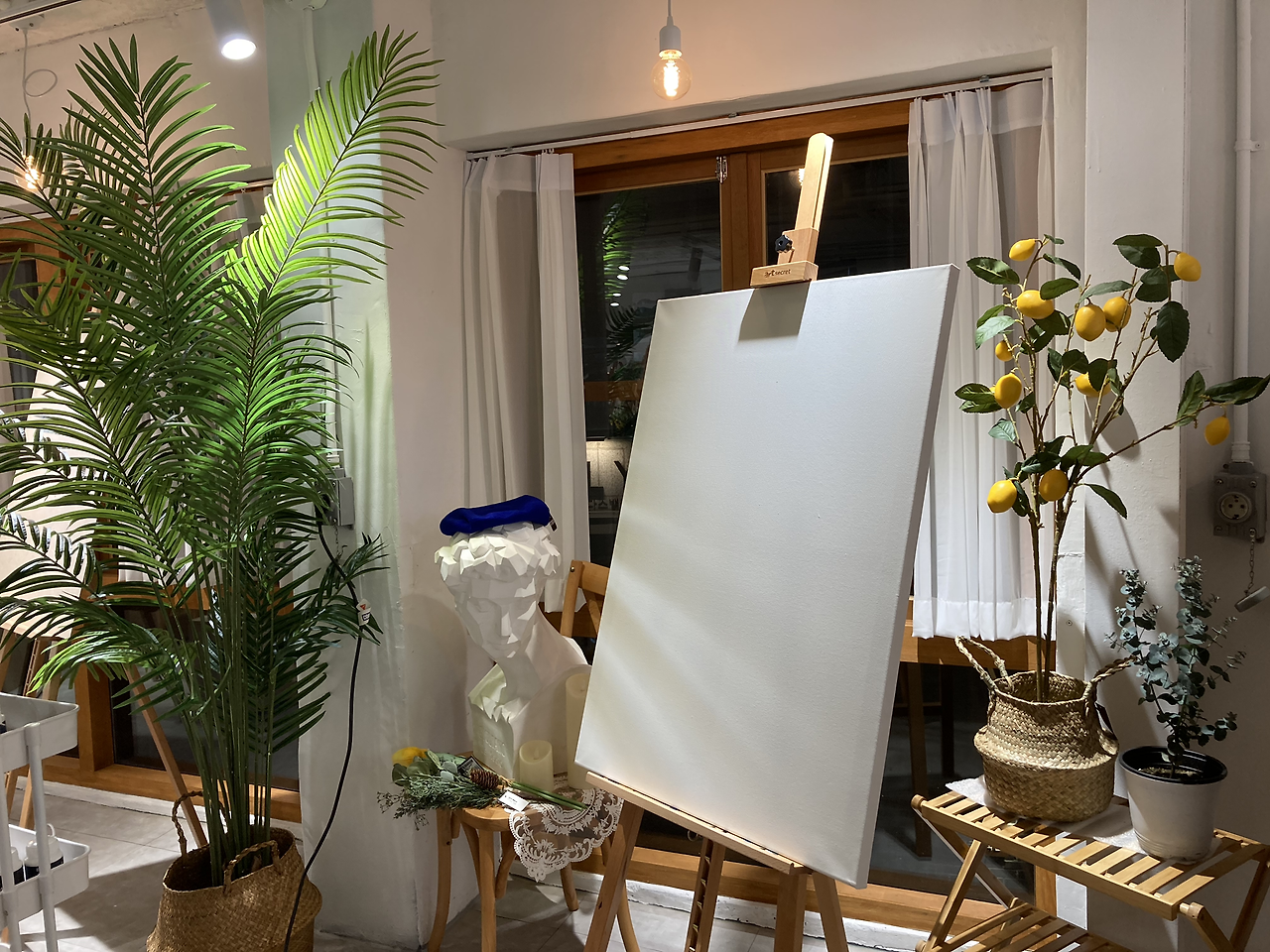 내가 그림을 그린 곳은 이태원 어느 골목에 위치한 드로잉 카페이다. 나처럼 새하얀 캔버스에 어려움이 있다면, 밑그림이 그려진 도안 위에 색을 칠하는 것부터 시작해도 좋을 것 같다.