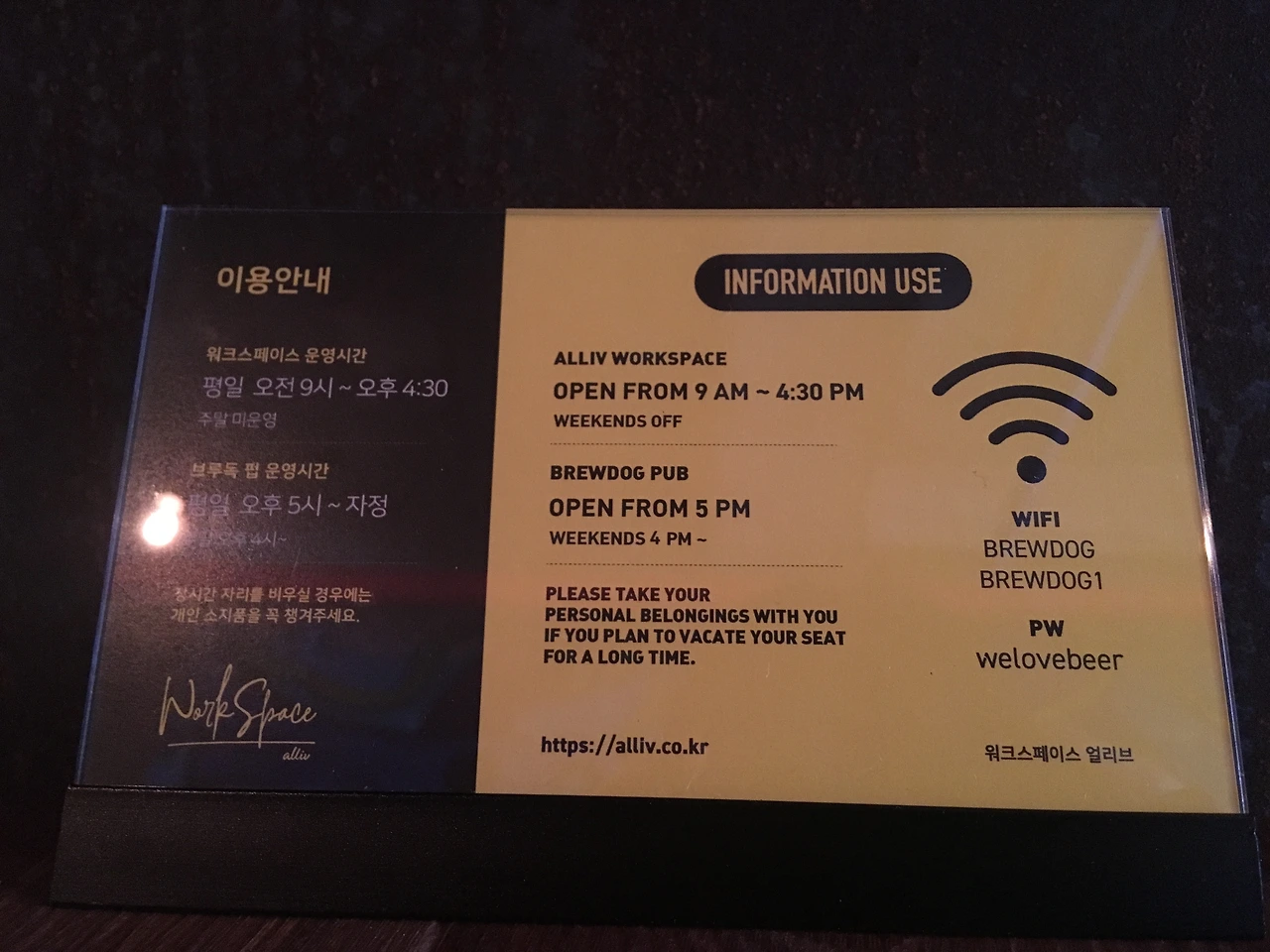 얼리브 라운지의 맥주는 어메이징 브루잉 컴퍼니의 맥주를 받아 사용하고 있으며, 일주일 전 오픈한 얼리브워크스페이스, 브루독 이태원점은 밤에만 운영하는 브루독의 유휴공간을 활용한 코워킹스페이스 이다.