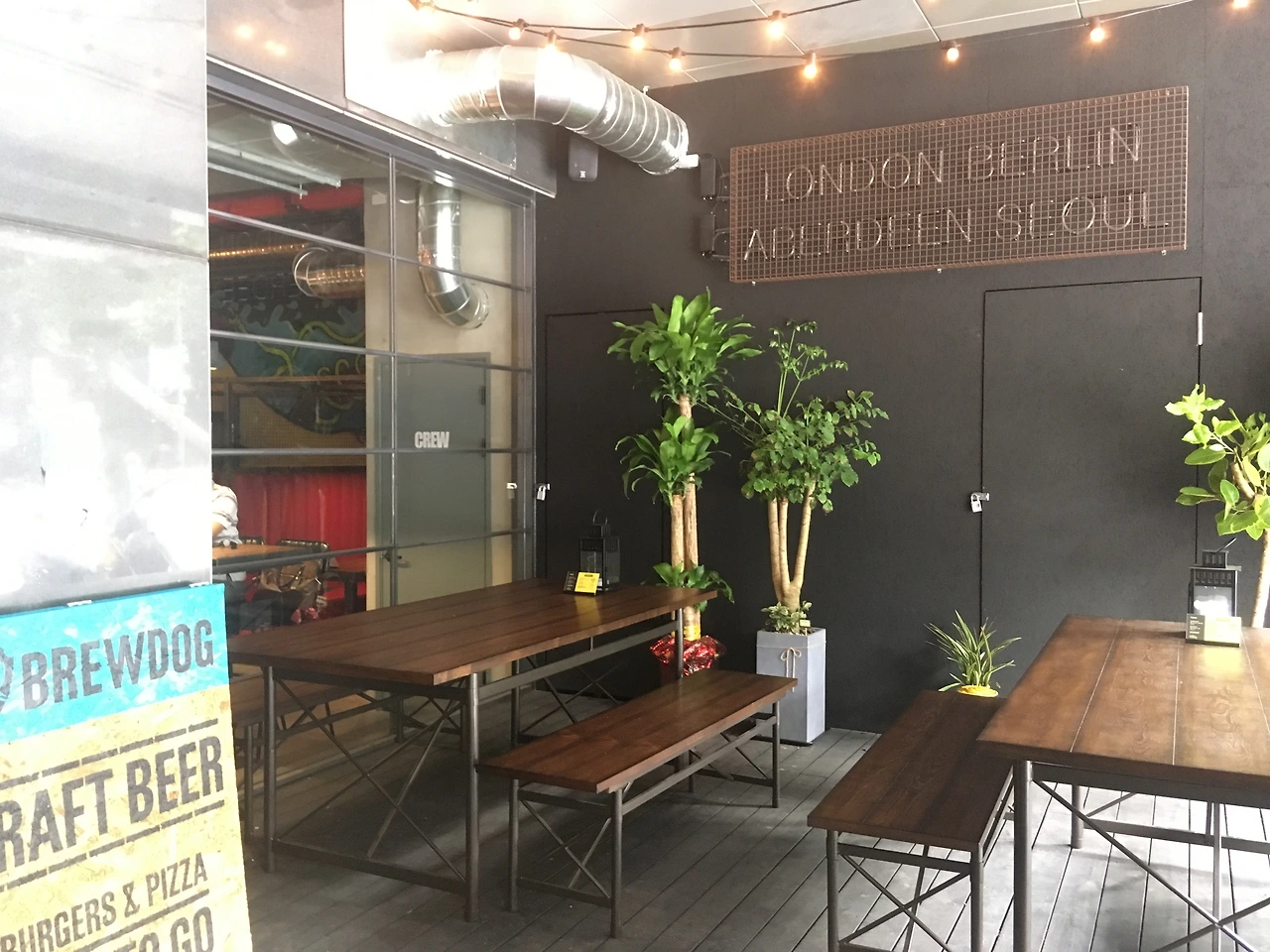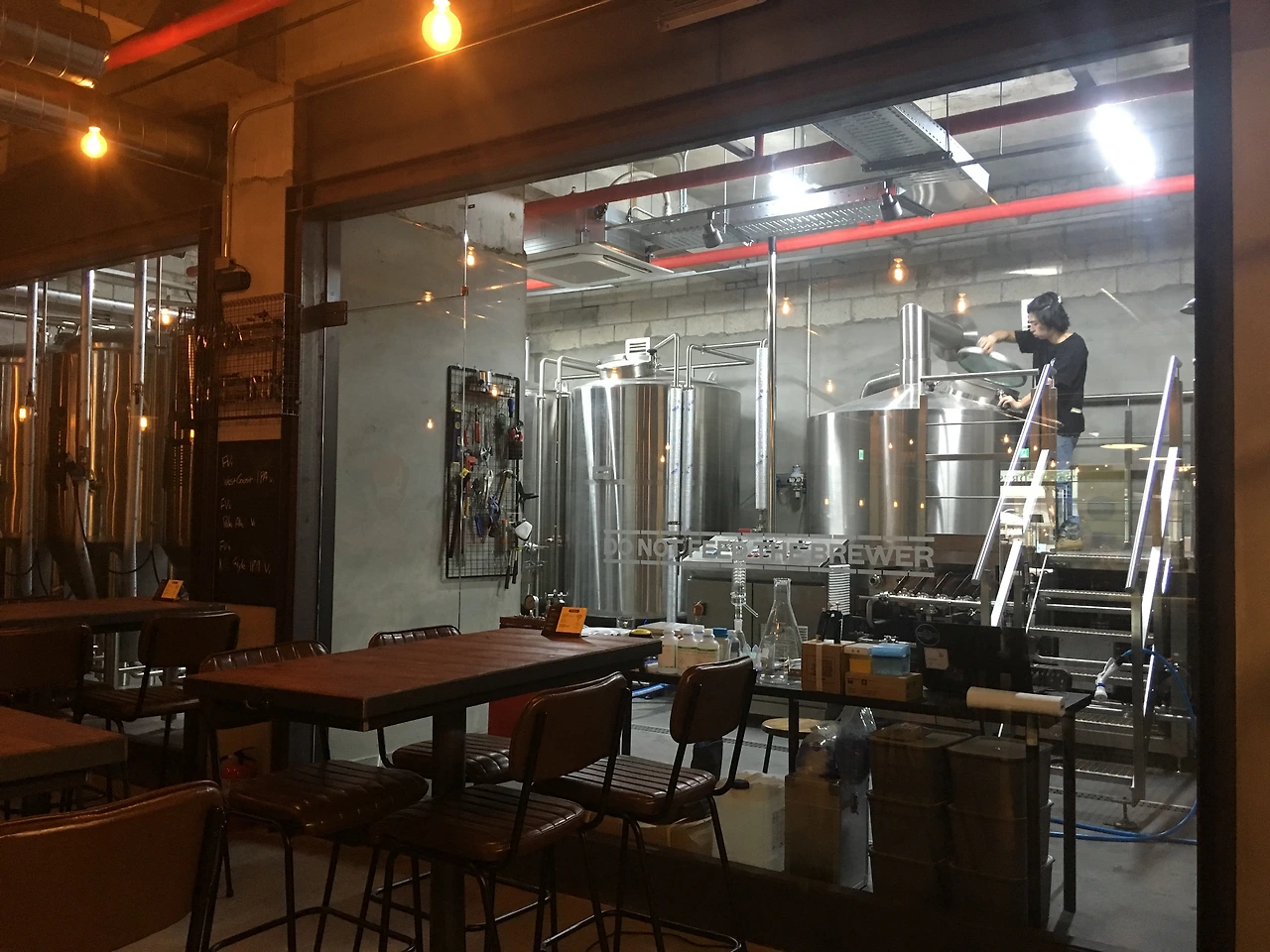 브루독이 술집이다 보니 작긴 하지만 양조장이 있고, 7일에서 10일 주기로 실제 양조를 합니다. 양조한 술 관리를 위해 양조사가 계십니다. 통유리로 다 보실 수 있는데요, 한쪽에선 작업을 하고 있고 한쪽에선 워커들이 노트북으로 일을 하고 있어서 이런 장면을 다른 곳에선 경험하기 어렵지 않을까 싶어요. 묘하지만 잘 어우러집니다. 이곳에 있으면 가끔 술 담그는 냄새가 조금씩 나는데요, 양조하는 날은 보리를 끓일 때 생기는 냄새가 납니다.