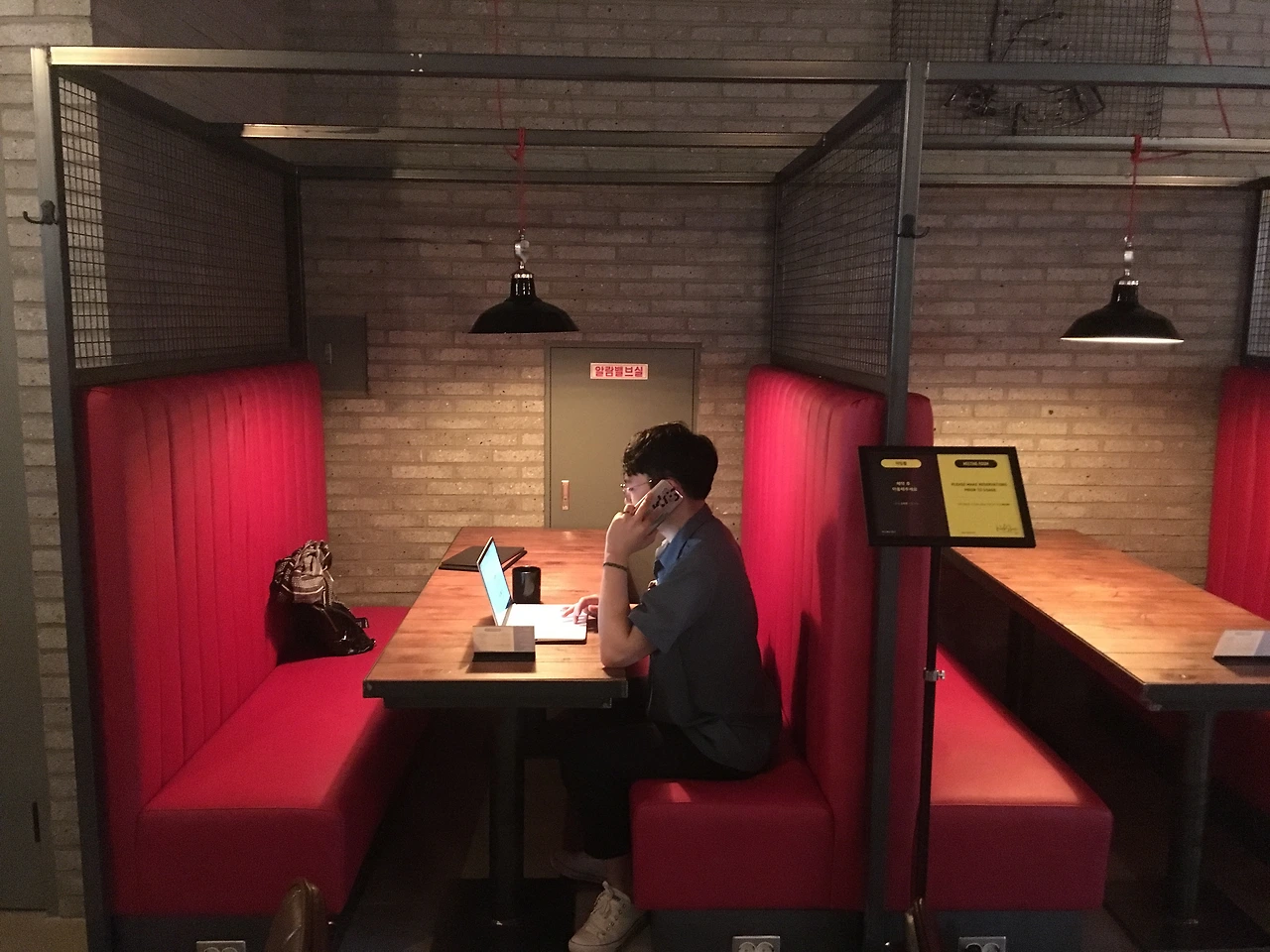 냉장고에 진열된 병맥주를 보면서 빨리 업무를 끝내야지라는 욕구가 셈 솟았다. 보드게임도 있었고, 새로운 인사이트가 필요하면 팀원들이랑 게임을 즐겨도 될 것 같았다. 혼자 이용하긴 아깝고 누군가와 함께 와서 이용하면 더욱 좋을 것 같다. 팀끼리 단체로 온다거나! 또, 생각보다 업무에 집중이 잘 되었다. 전체적으로 어두운 분위기인데, 독서실처럼 집중이 잘 된다. 음악이 흥겨워서 아침부터 텐션이 오른다. 나도 모르게 빠른 속도로 업무를 하고 있었고 빨리 끝내고 여기서 맥주를 마시며 친구들과 놀고 싶다는 생각이 들었다. 잘만 활용하면 참 도움되는 곳이다.