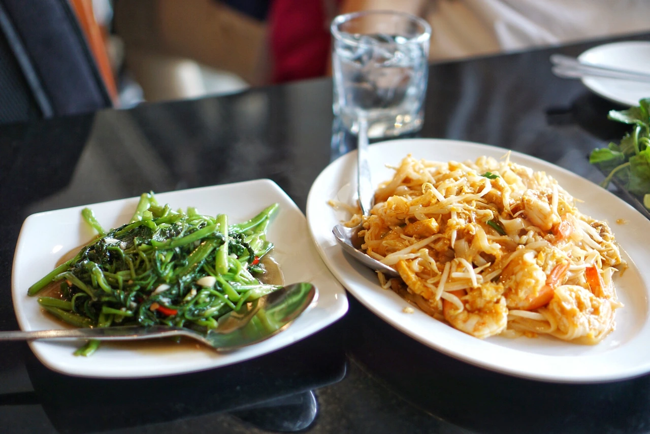 식당 안에서 메뉴 판을 보자마자 팟타이와 모닝글로리부터 찾았다. 그리고 볶음밥과 만두가 유명한 식당이라 몇 개 더 시켰다.