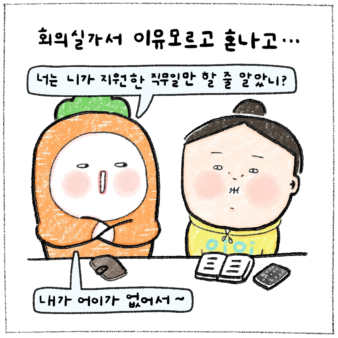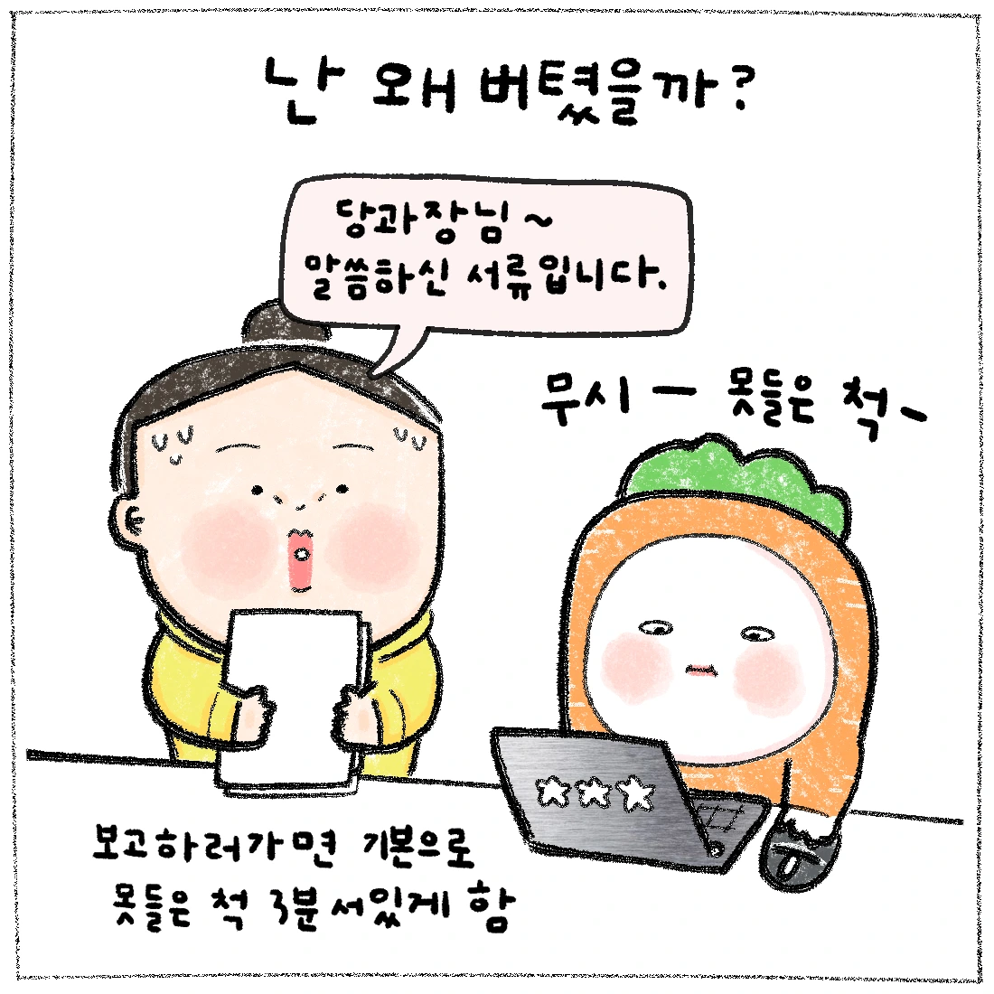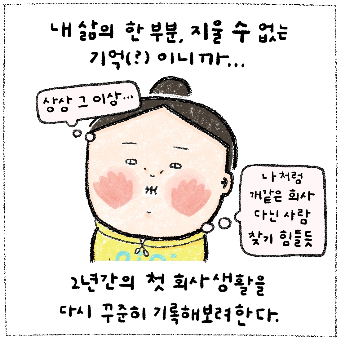이 만화를 브런치에 올리며 덧붙이고 싶은 말은, 회사는 회사인거다. 회사에서 많은 상처를 받은 사람들이 어디에서든 다들 위로를 받으면 좋겠다. 내 만화로 위로를 받으면 더욱 좋쿠...