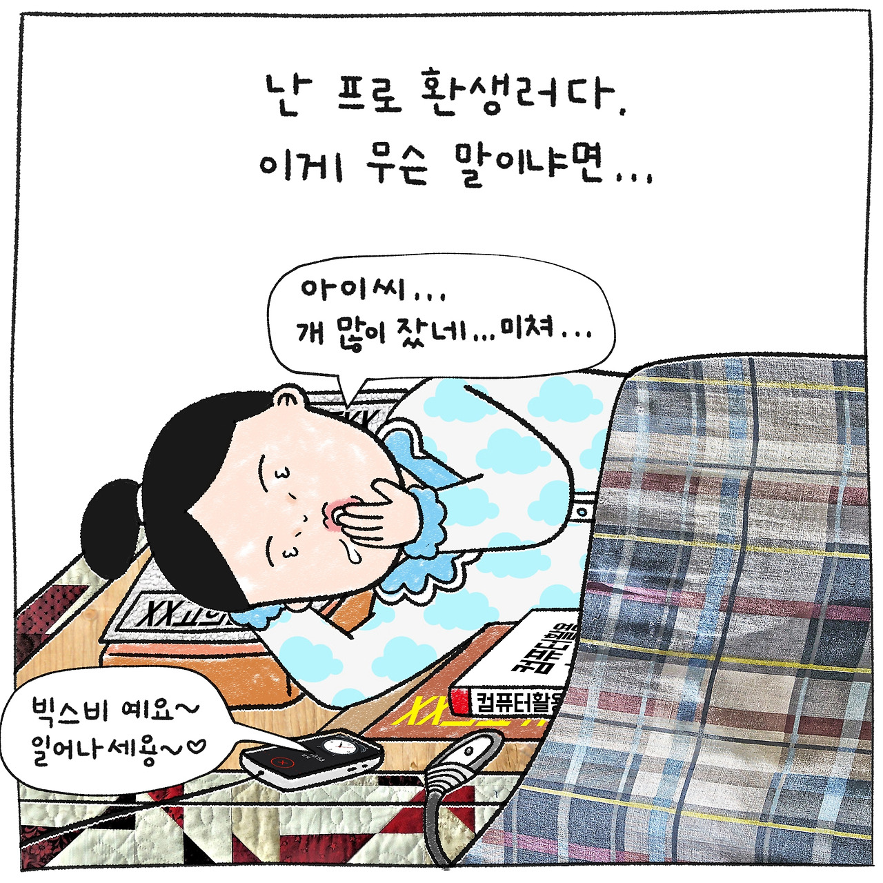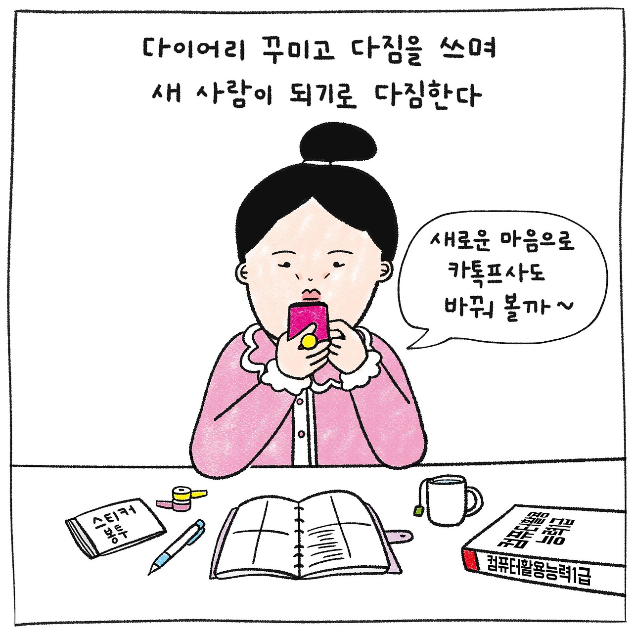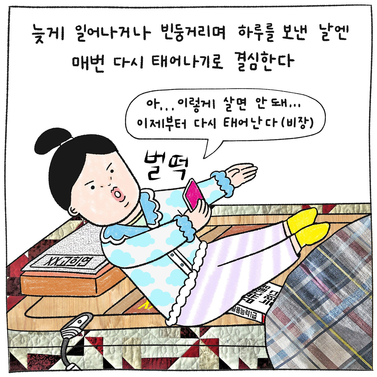 때문에 매일밤 마다 반성을 하며 내일은 다시 태어날 것을 다짐하지만, 결과는 또르르~