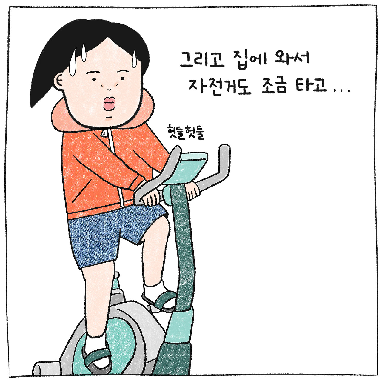 이 만화를 그린 게 대략 1년 전이지만 난 변함없이 운동을 안 하며 지낸다. 사실 난 운동하기를 정말 싫어하는 사람인데, 이유는 못해서다 (단순)