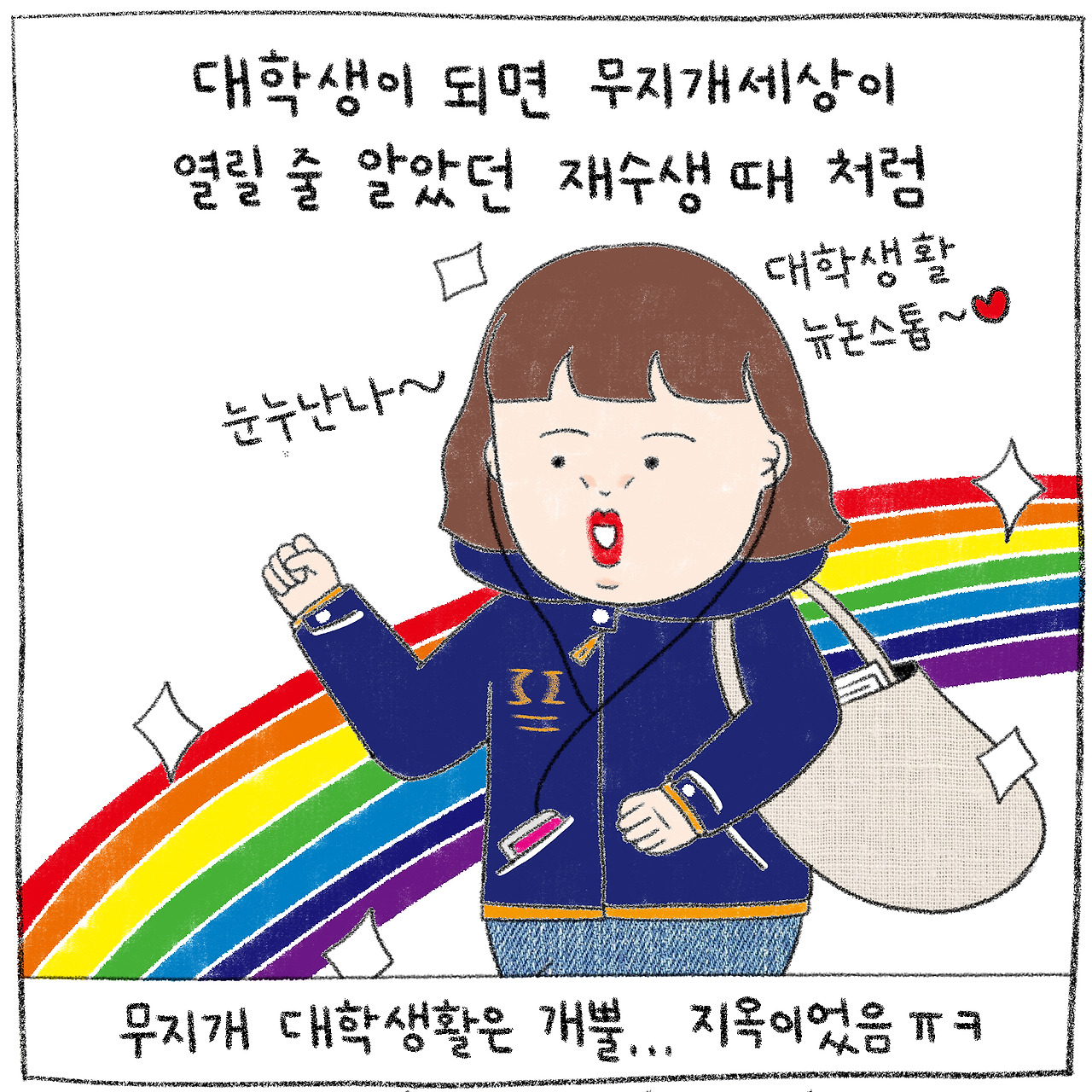 아마 대학생이 되면 자동으로 살이 빠지고 얼굴이 예뻐지며 학점은 당연히 A를 받고 '뉴논스톱'의 삶을 살게 될꺼라고 기대했던 재수생때의 마음과 비슷한 것 같다.