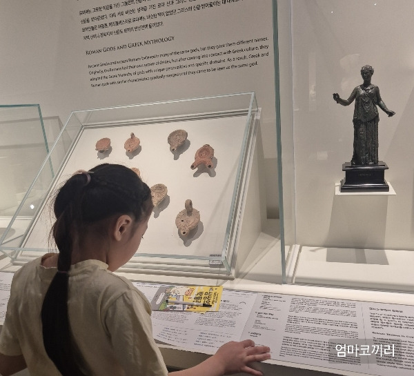 전시관 입구에 있는 안내문에는 신들의 로마식 이름과 그리스식 이름이 나와있었다. 그게 신기했는지 전시관 안에서도 그 이름을 하나하나 찾아보면서 전시물을 살펴보는 모습을 보니 오길 잘했다고 생각했다.