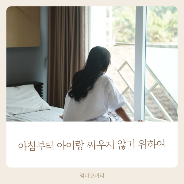 아이가 일어날 때까지 옆에서 계속 이름을 부르고 깨우고 있을 수밖에 없는데 이 시간이 길면 30분 짧아야 10분이다. 그러다 보면 나는 그 시간이 자꾸 아까워서 더 화가 났다. 아이 옆에서 책을 보든, 뉴스를 보든 내가 할 수 있는 사소한 것들의 리스트를 만들자. 그러면 아이가 늦게 일어나면 오래 걸리는 그 시간도 할 일을 하고 있을 수 있고 그러면 나도 시간이 아깝다는 생각을 하지 않아도 될 테니 내 감정이 널뛰지 않도록 할 수 있겠다.