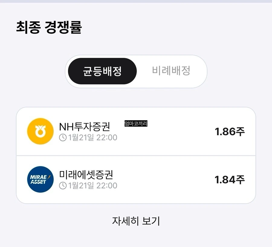 -> 치열한 경쟁은 아니었고, 최소 수량 청약자들 모두 배정을 받았다.