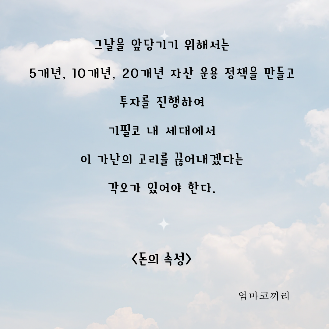 내 세대에서 가난의 고리를 끊는다라는 말은,