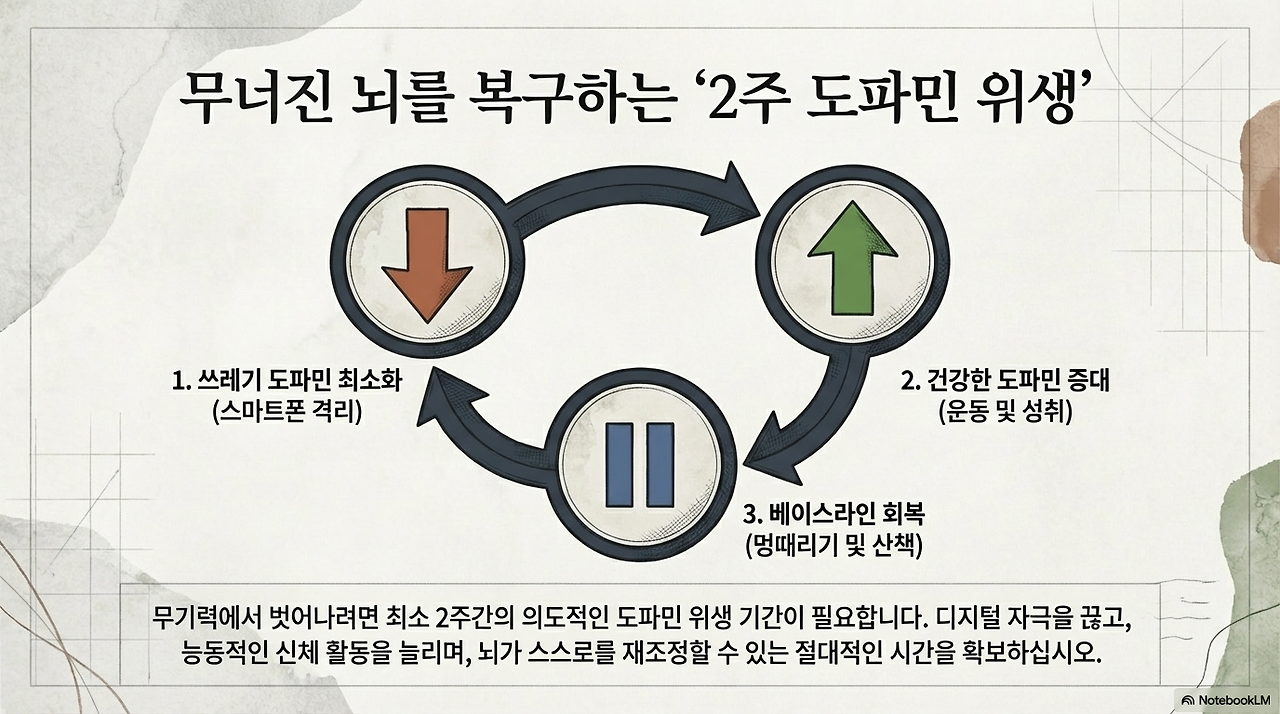최소 2주간의 도파민 위생이 필요하다고 말한다.