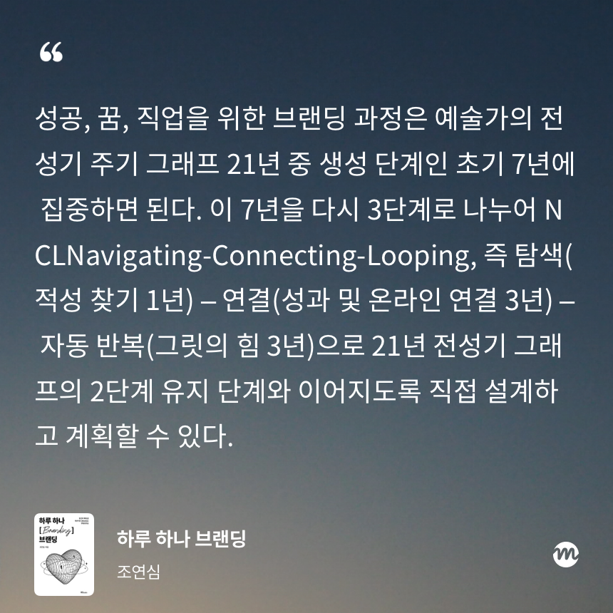 오늘 읽은 부분에서 브랜딩 과정을 예술가의 전성기 주기에 적용해 설명한 내용이 나왔다.