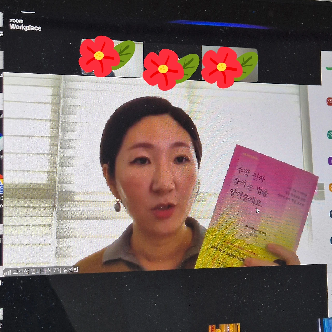 교집합 연구소에서 하는 엄마 대학 7기가 시작됐다. 이번에 처음 참여하게 되었는데, 그전에도 알았으면 좋았겠다는 생각이 들었다. 일단 7기는 수학이다. 주단 쌤의 신간 <수학 진짜 잘 하는 법을 알려줄게요>가 나오면서 시작된 거라 초등 수학으로 진행되는 것 같다. 교재는 그동안의 저서 <공부 독립>, <초등 국영수 문해력>과 신간을 포함한 3권으로 미리 읽고 총 4강의 강의에 참여하게 된다. 모두 출석하고 과제 제출까지 완료해야 수료증을 받을 수 있다. 특별하게도 수료증에는 아이 이름도 함께 기재된다고 하니 열심히 해야겠다는 마음이 더 생겼다.
