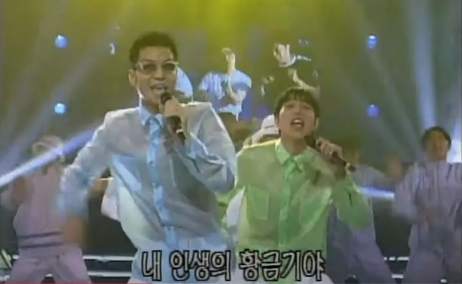 한창 'H.O.T.' '젝키' 같은 멋있는 남자 아이돌 그룹과 'S.E.S / 핑클' 누나들로 마음이 정화되고 있었는데 대체 시대에 맞지 않는 콘셉트는 무엇이란 말인가. 이 노래는 도저히 <맨발의 청춘> 처럼 커버칠 수 있는 상황이 아니었다. 정말 아재들, 아버지 세대의 그룹이 되어버린 것이다.